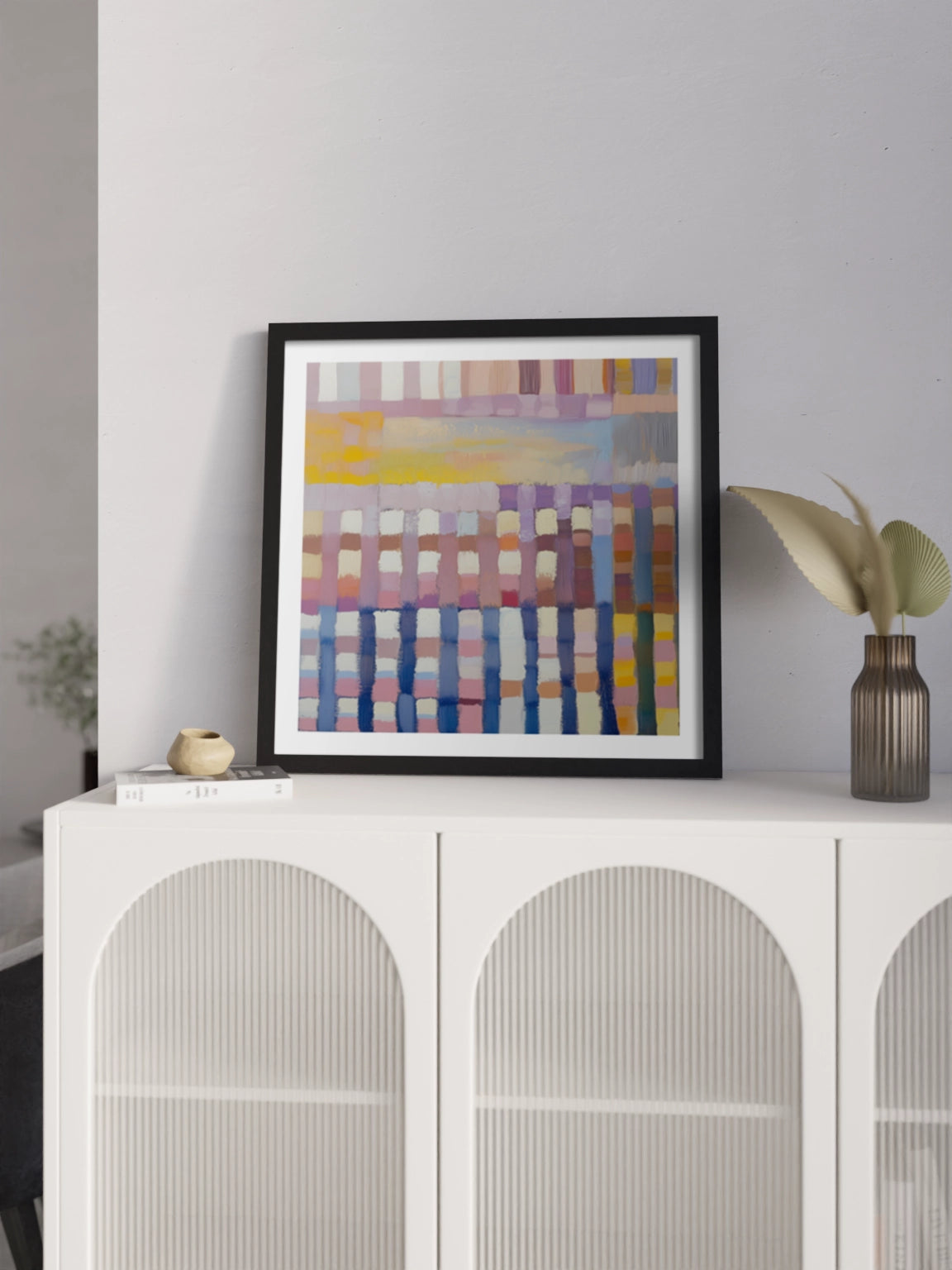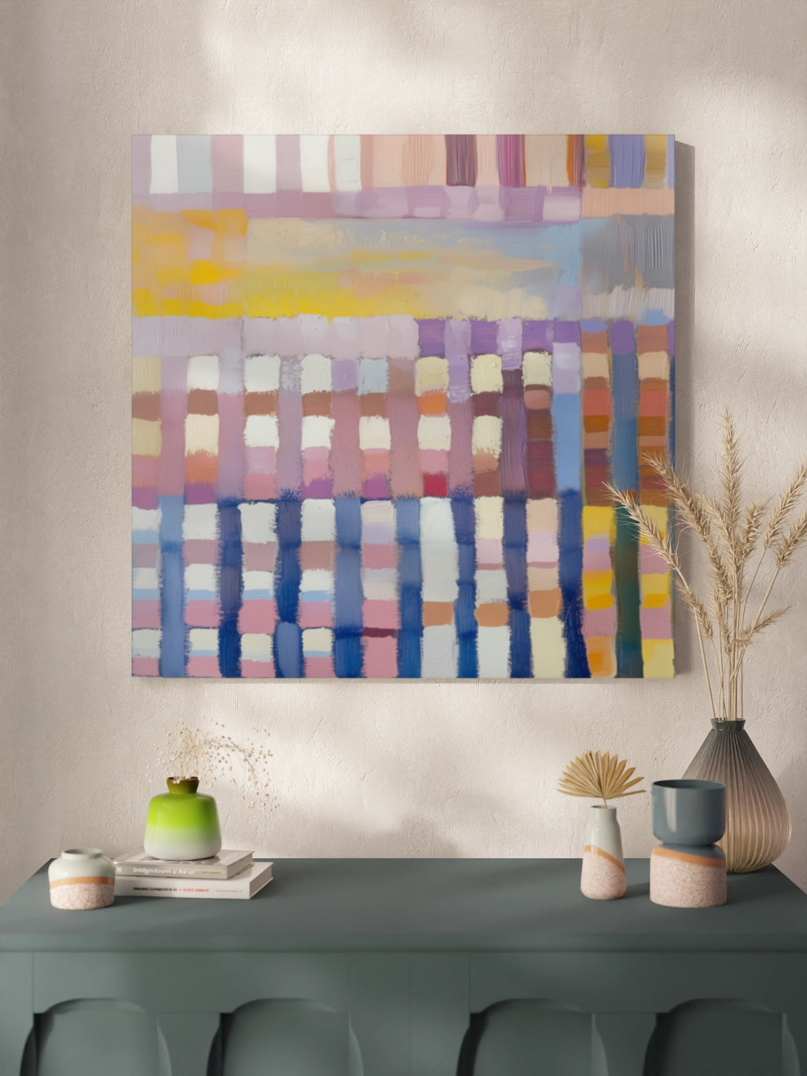 Картина абстракція, геометрія, рожеві та блакитні кольори, сучасне мистецтво.