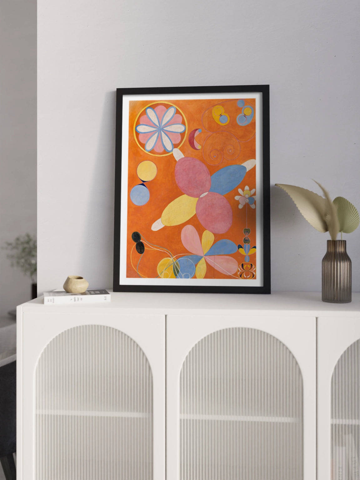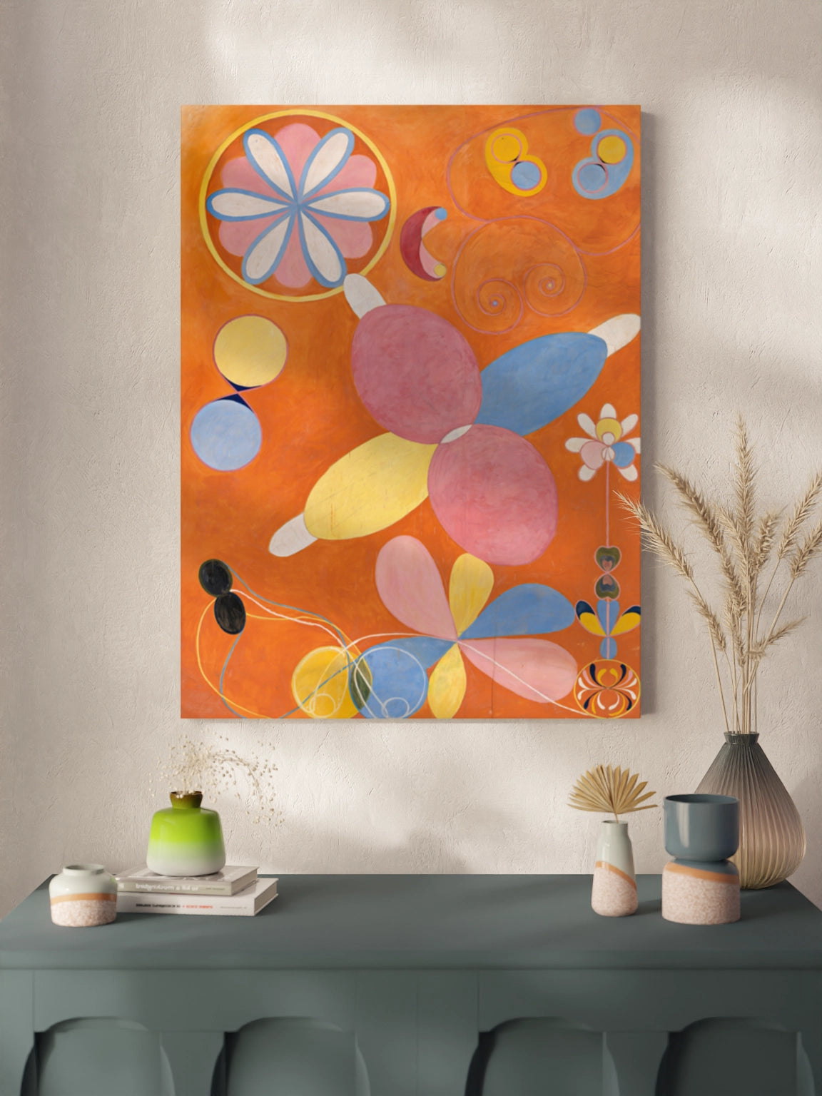 Абстрактна геометрична картина на полотні, склі та декорпанелі «Десять найбільших, № 4, Юність». Робота шведської художниці та містика Хільми аф Клінт. Картина стане яскравим акцентом у вітальні, спальні, дитячій кімнаті, офісі або в закладі.