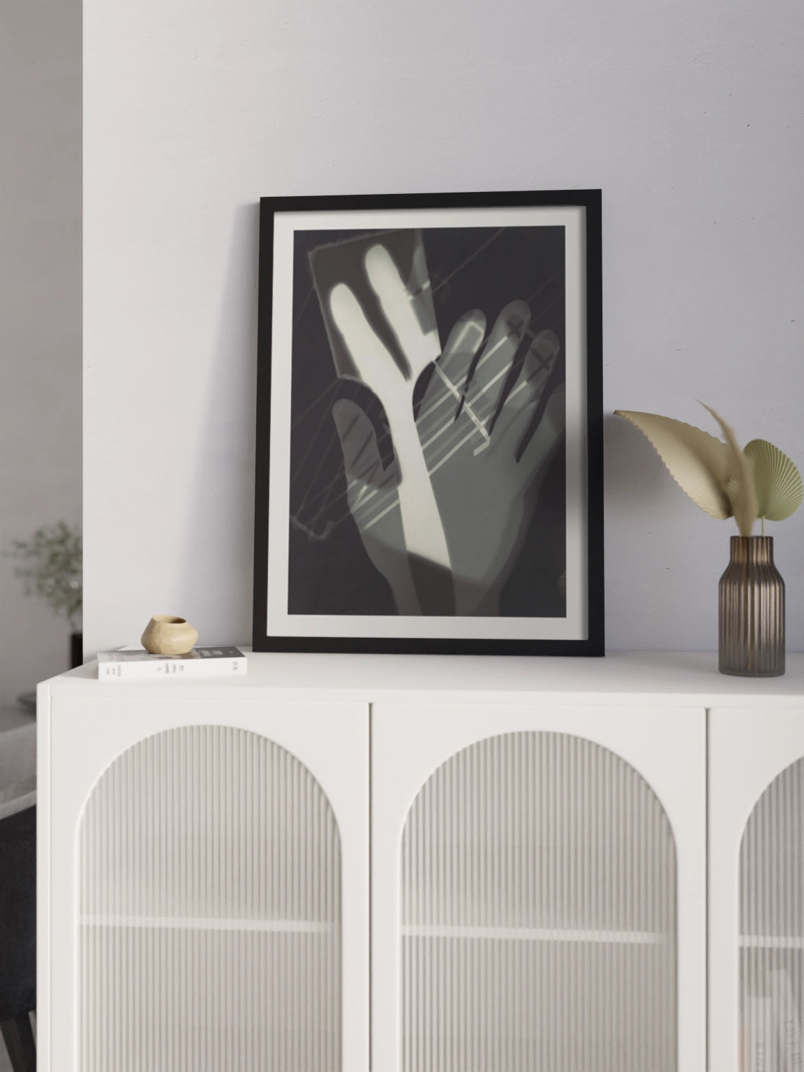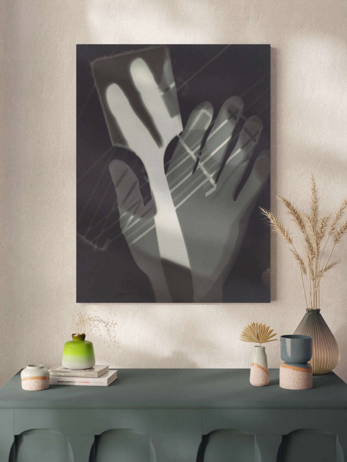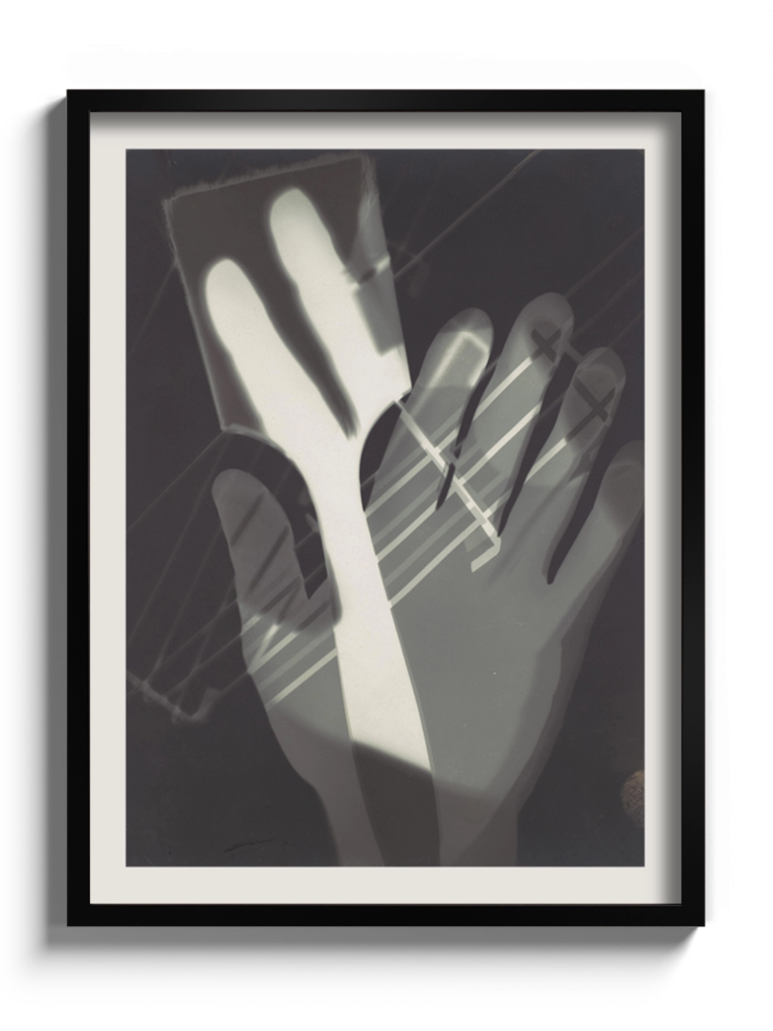 Фото з руками на полотні, склі та декорпанелі «Фотограма». Це фотограма угорського художника Ласло Мохолі-Надя. Зображення стане гармонійним акцентом у вітальні, спальні, дитячій кімнаті, офісі або в закладі.