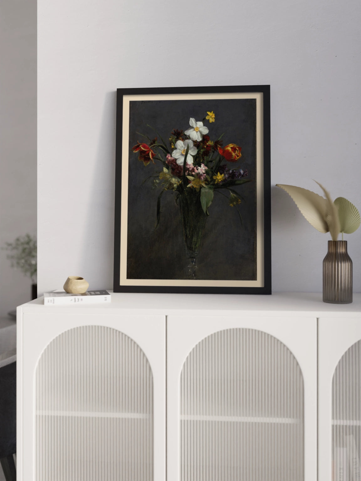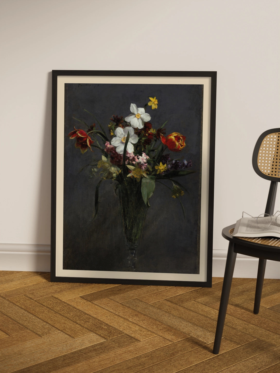 Картина французького митця Henri Fantin-Latour (1872). Друк, букет, натюрморт, квіти, живопис, масло.