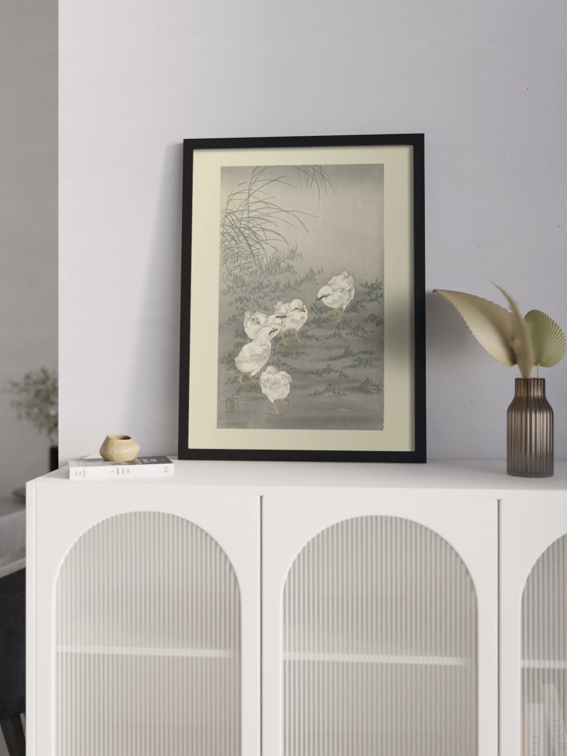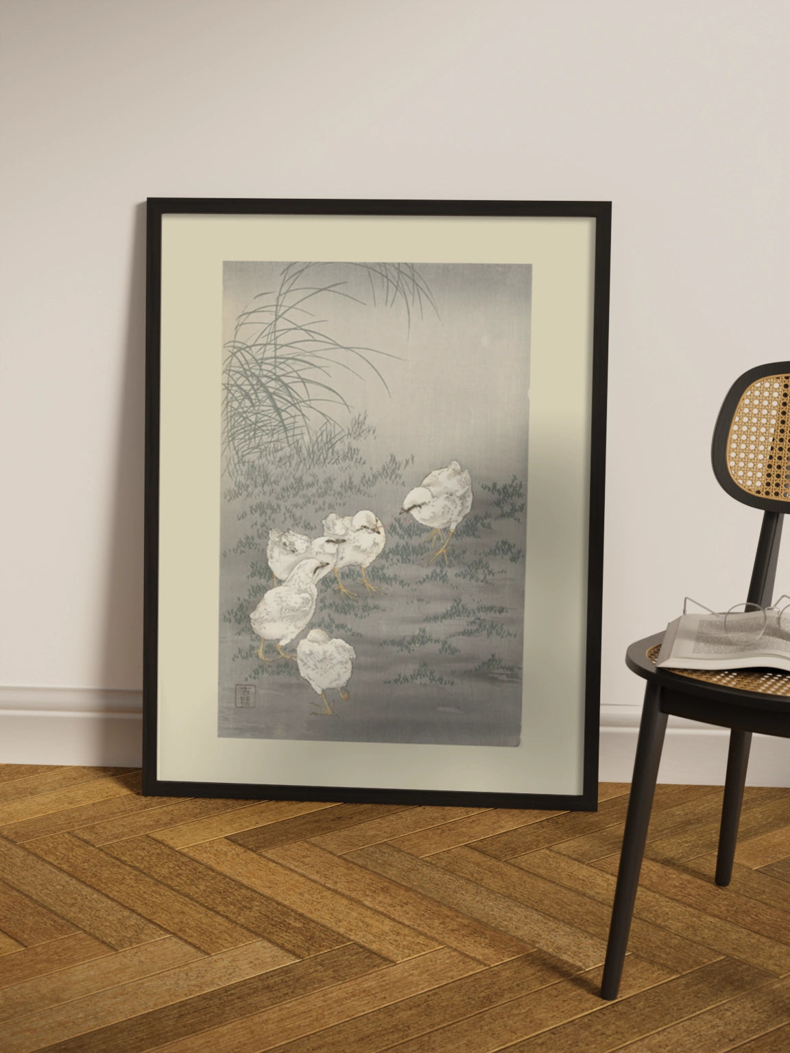 Картина "Курчата та Хробак" японського митця Охара Косон.