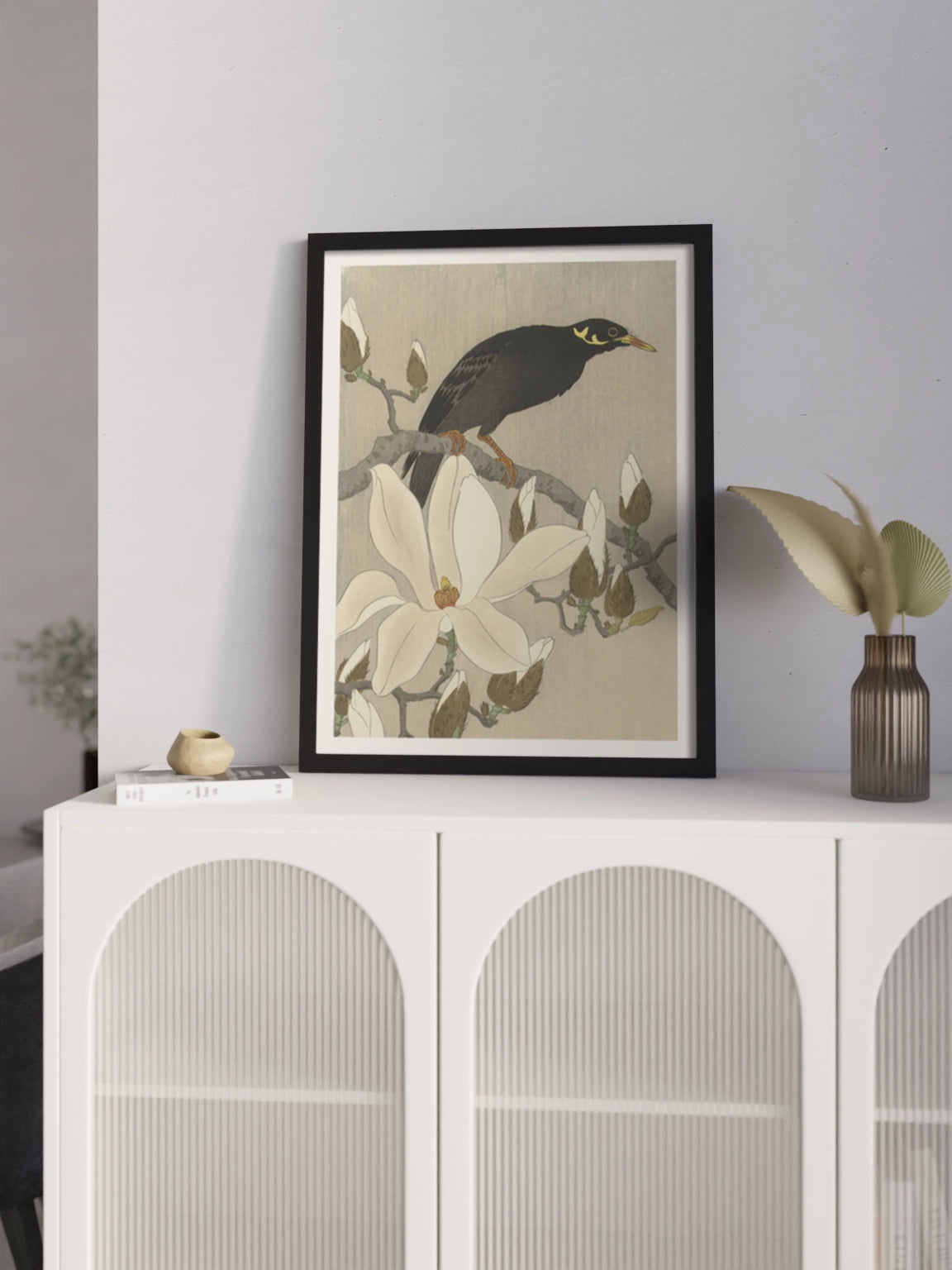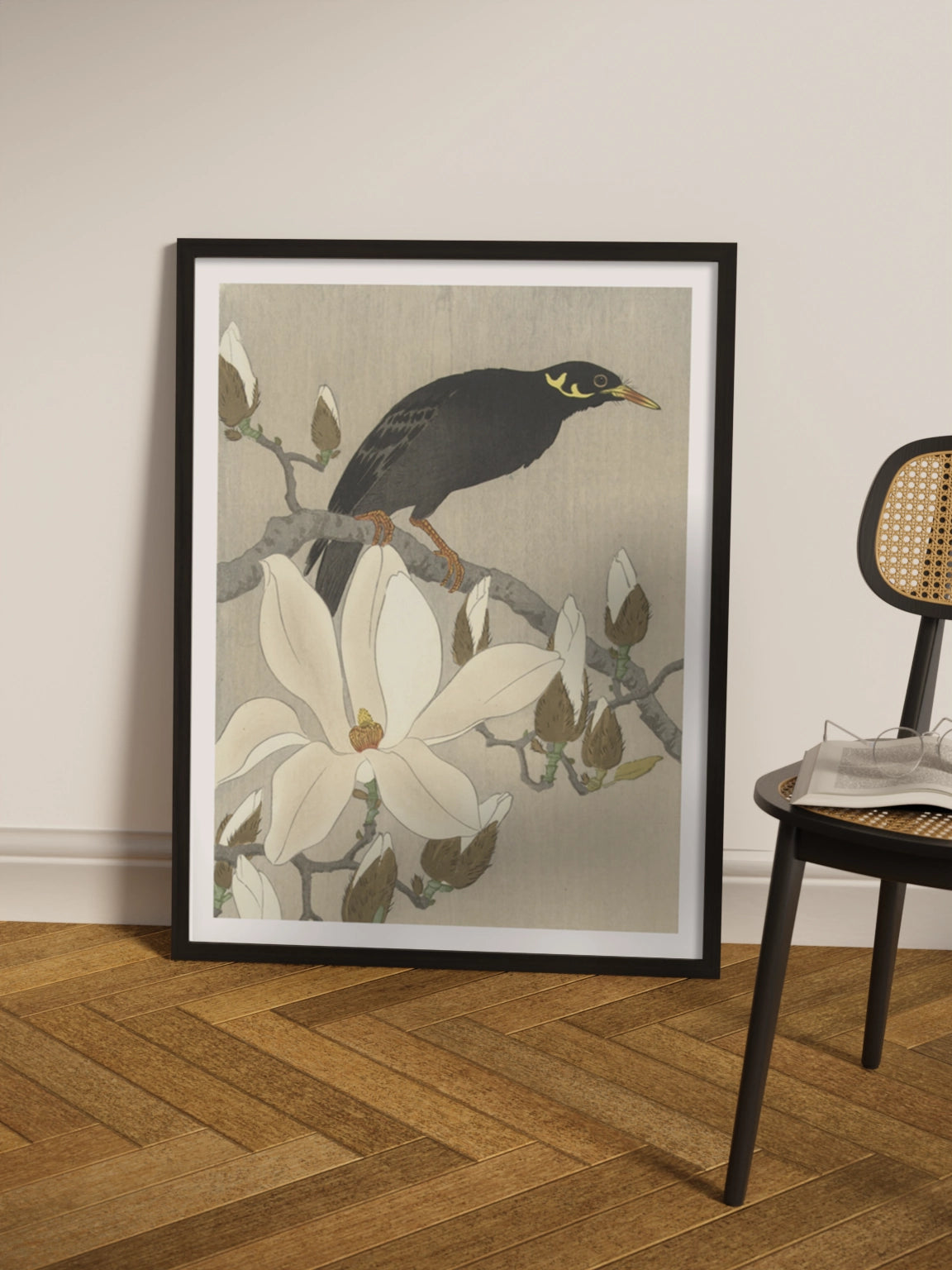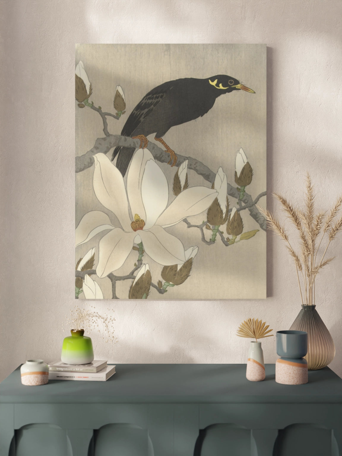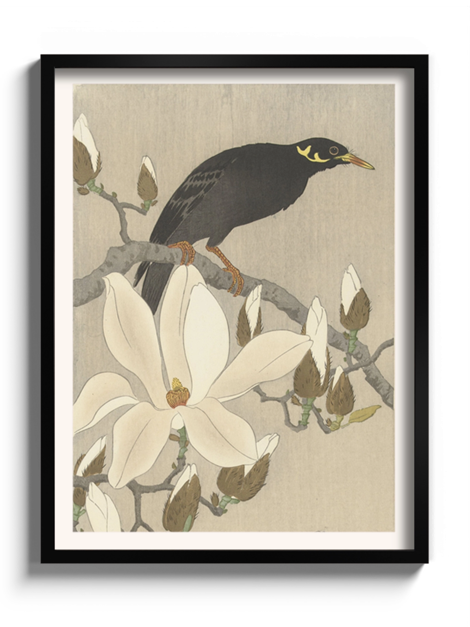 Картина "Майна на гілці магнолії" японського митця Охара Косон.