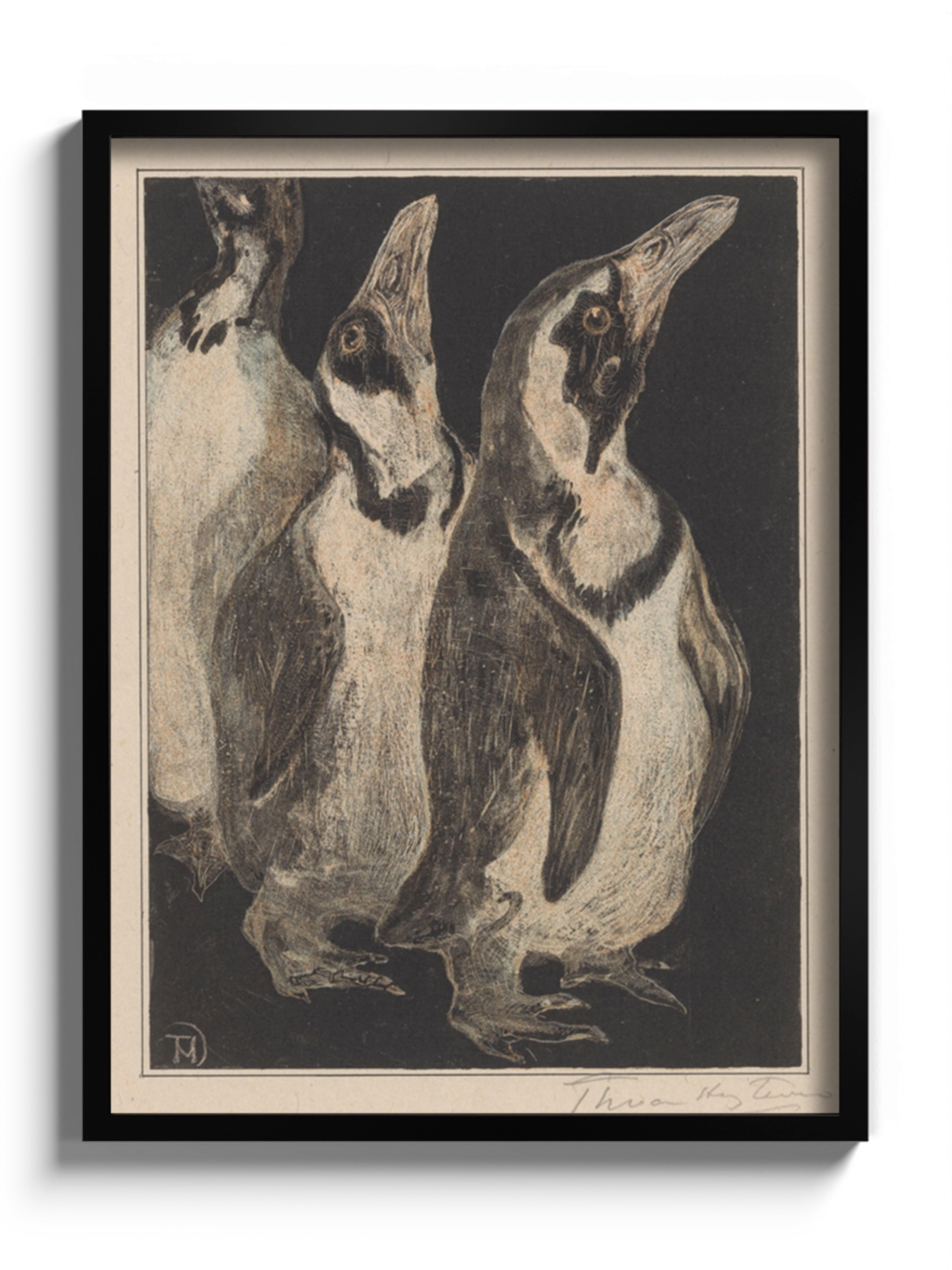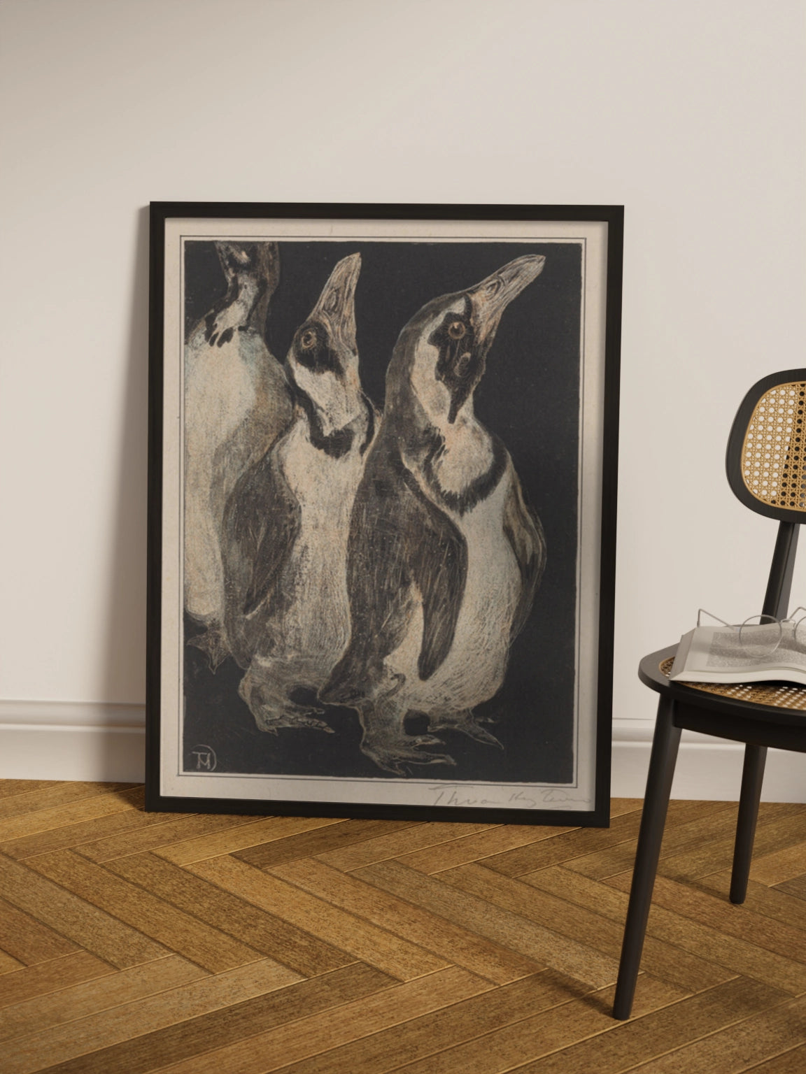 Картина з пінгвінами на полотні, декорпанелі чи склі «Три пінгвіни» — стильна друкована картина для сучасного інтер’єру. Робота голландського художника Тео ван Хойтеми виконана в стриманій сірій гамі та стане гармонійним акцентом у вітальні, спальні, дитячій кімнаті, офісі або громадському просторі.