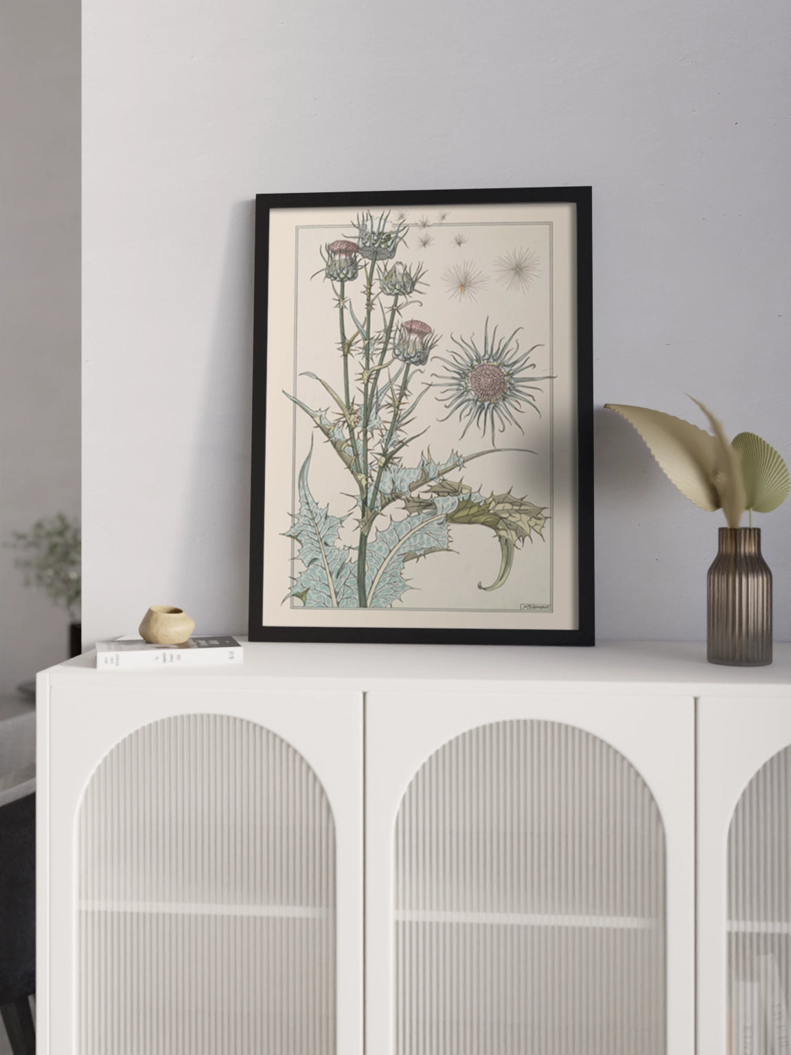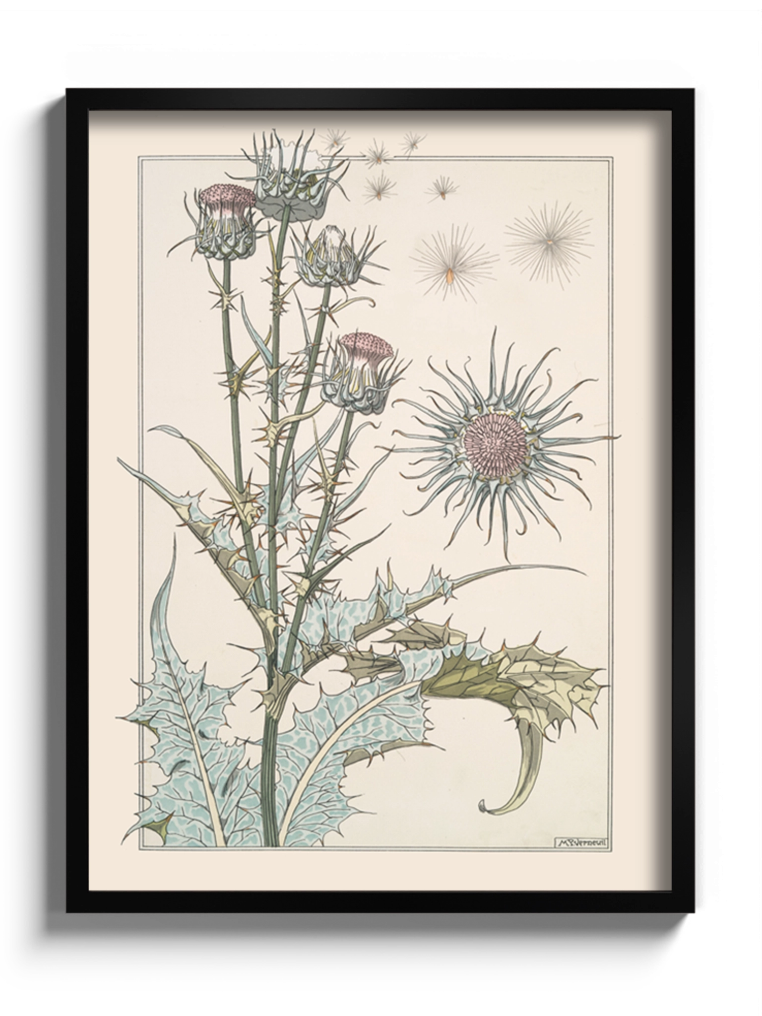 Постер Картина французького митця та декоратора в стилі Арт-нуво Maurice Pillard Verneuil. Зображення з рослинами, друк картин, бежевий колір.