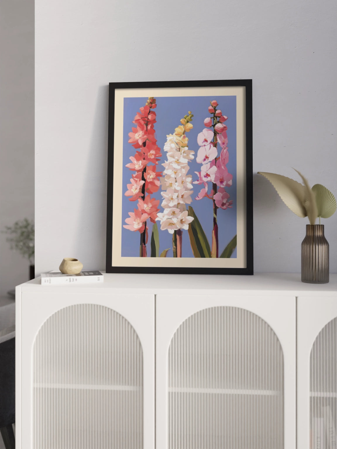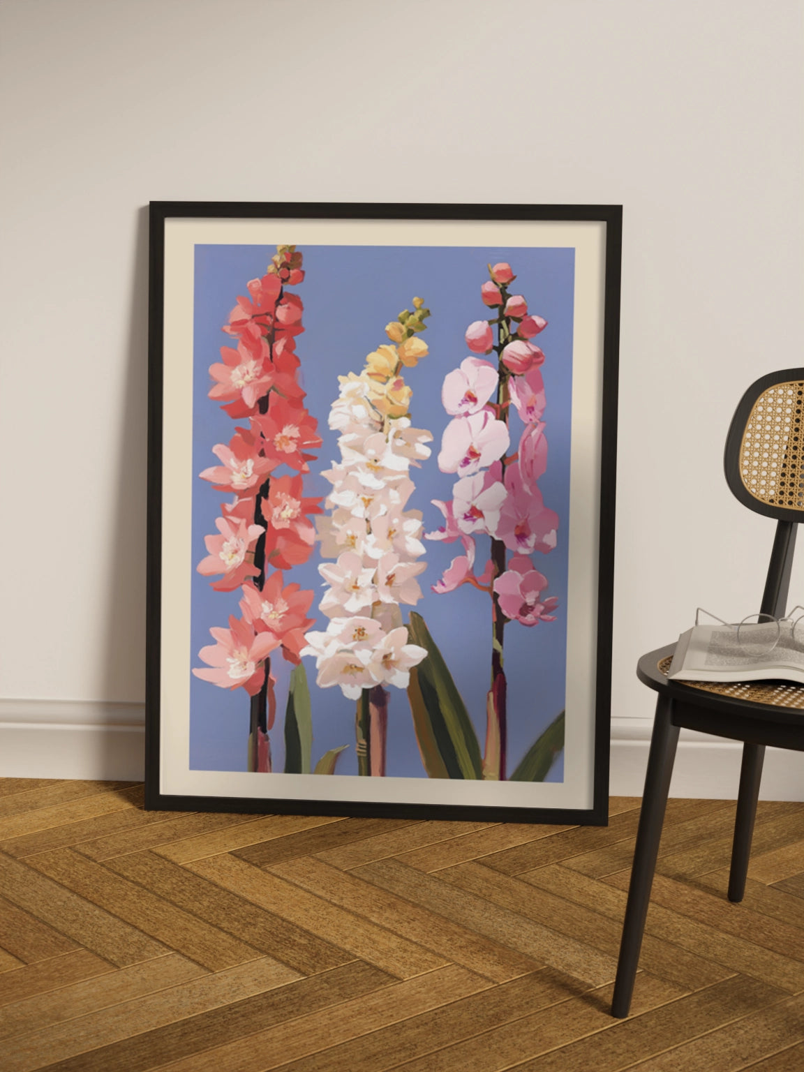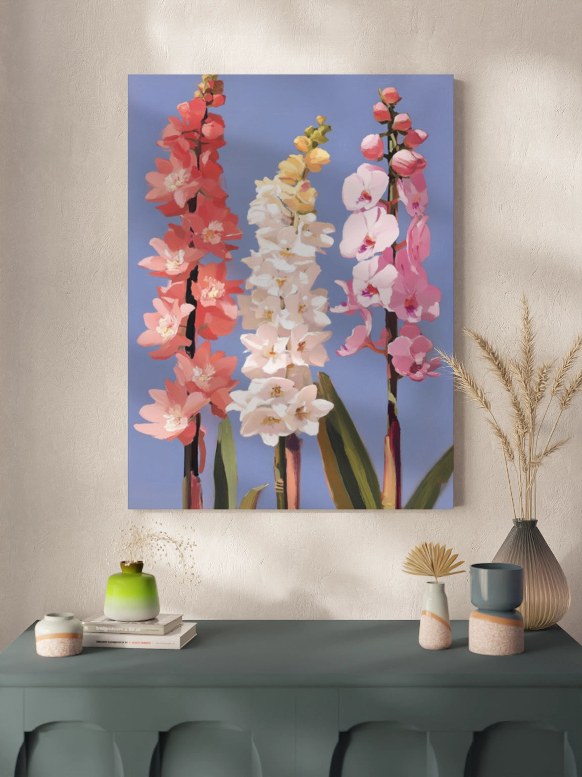 Картина, друк, рослини, квіти, блакитний рожевий кольори.