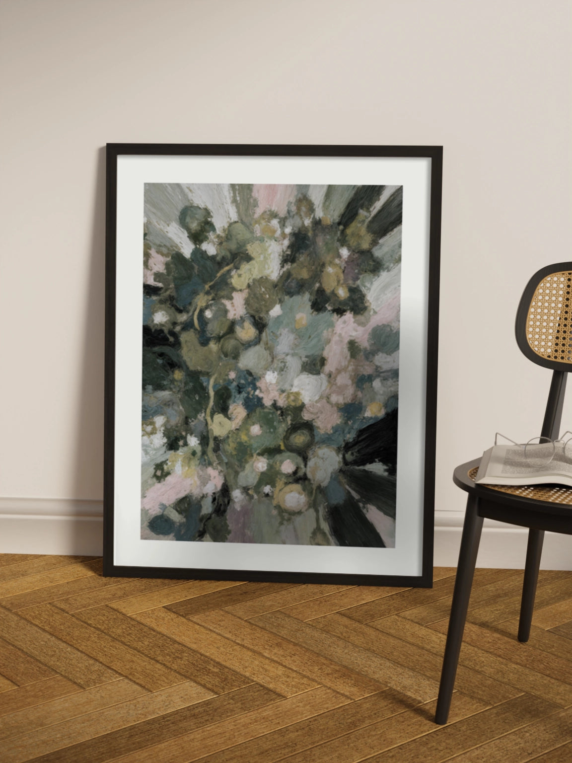 Абстракція в зелених, болотних тонах, сучасне мистецтво для ваших стін.