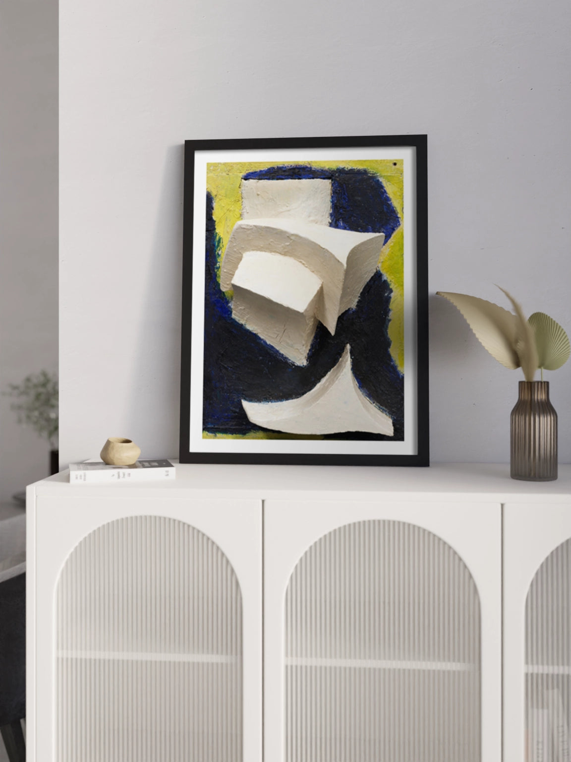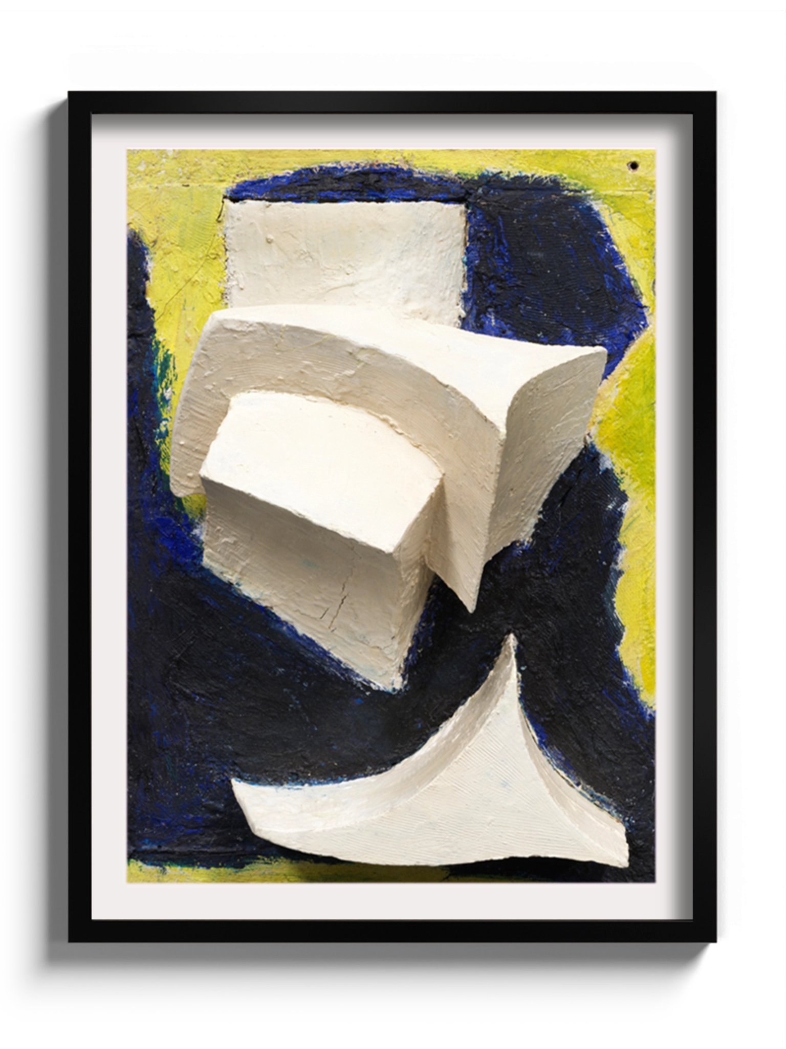 Абстракція в синіх, жовтих та білих кольорах німецького художниа Курта Швіттерса.