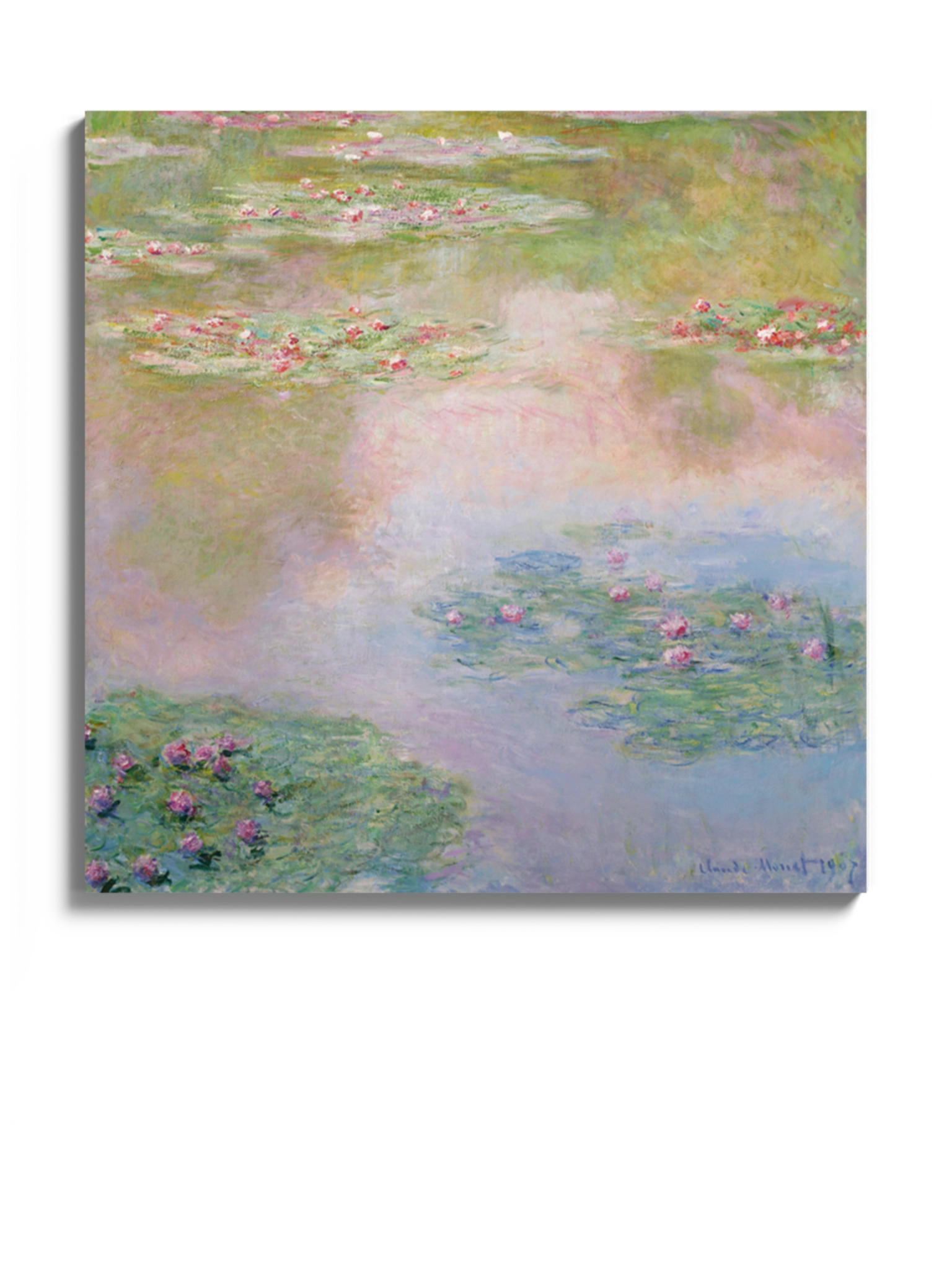 Картина «Водяні лілії» французького художника та одного із зісновників імпресіонізму Клода Моне. Рожевий колір, квіти, ранок, імпресіонізм.