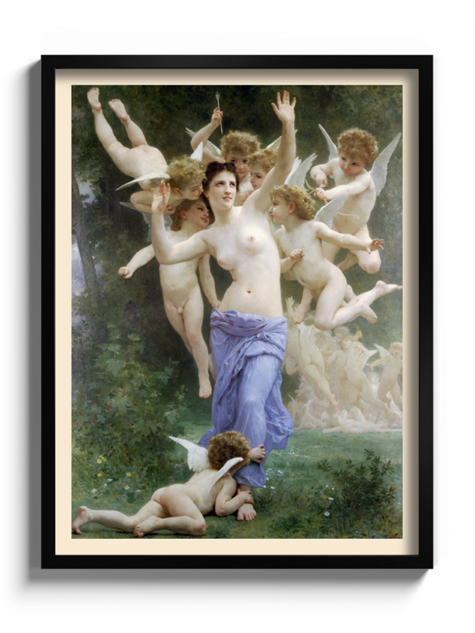 Картина французького художника Вільяма Бугро. Жінка, янголи, класичний живопис.