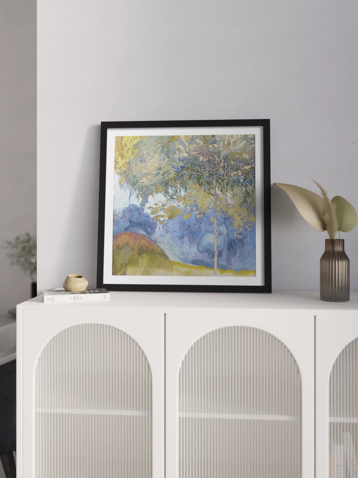 Картина «Краєвид Бумрейка» французького художника Georges de Feure. Абстрактний пейзаж, дерева, ліс, блакитні кольори.