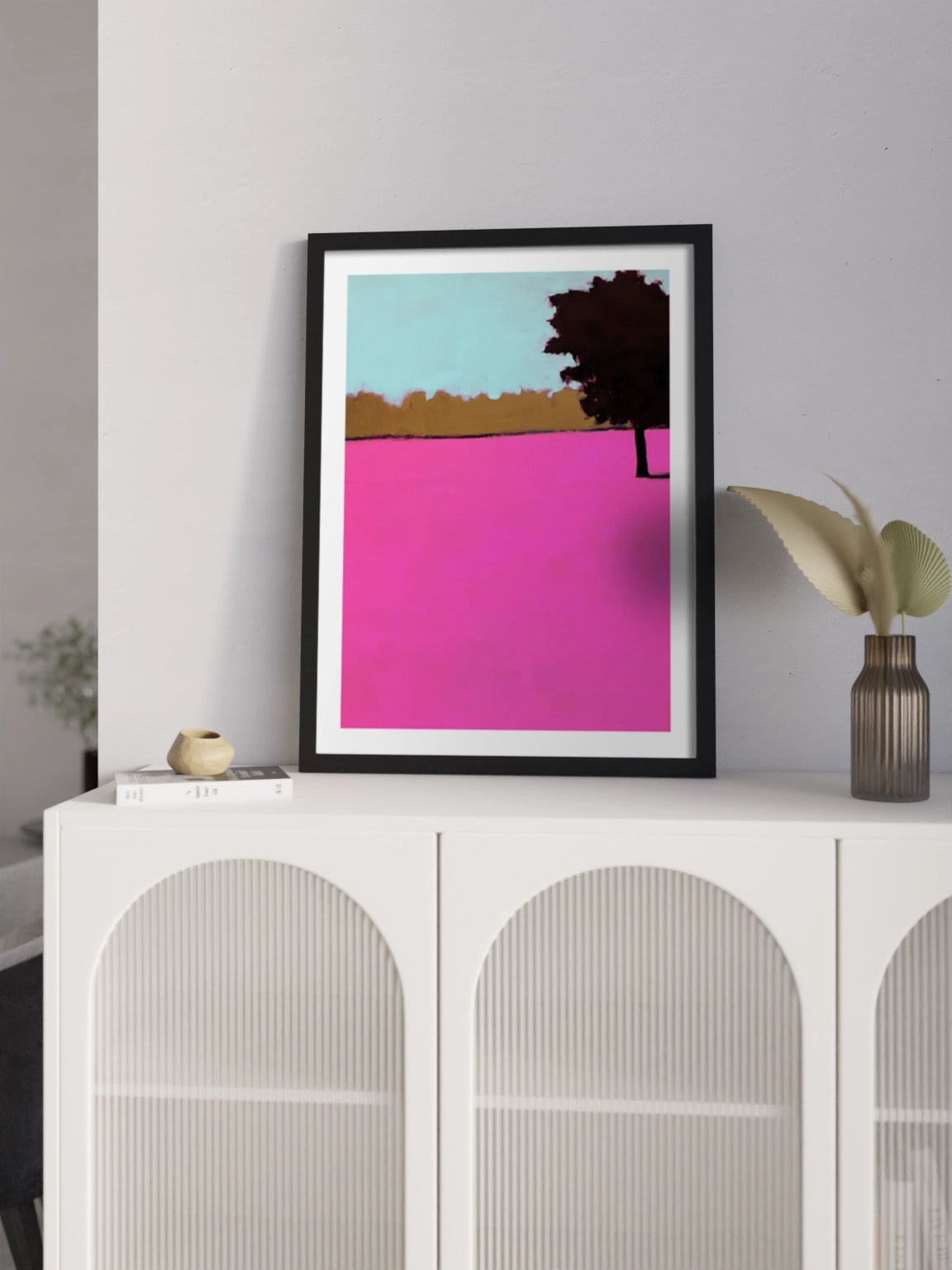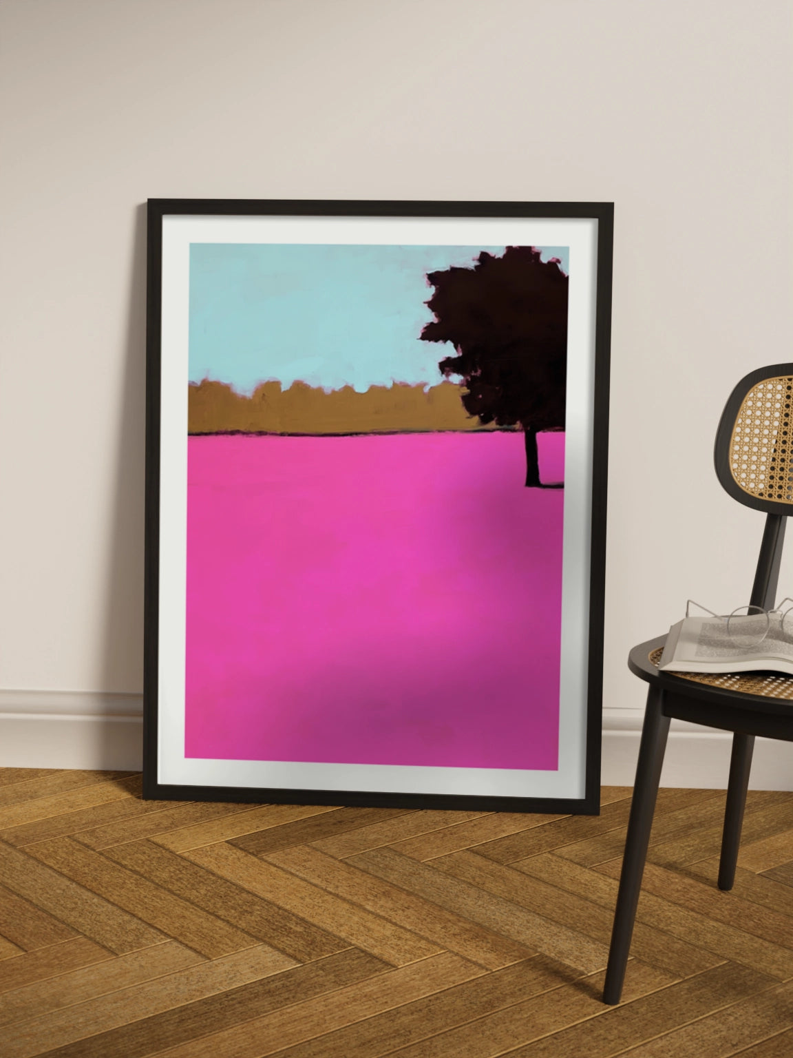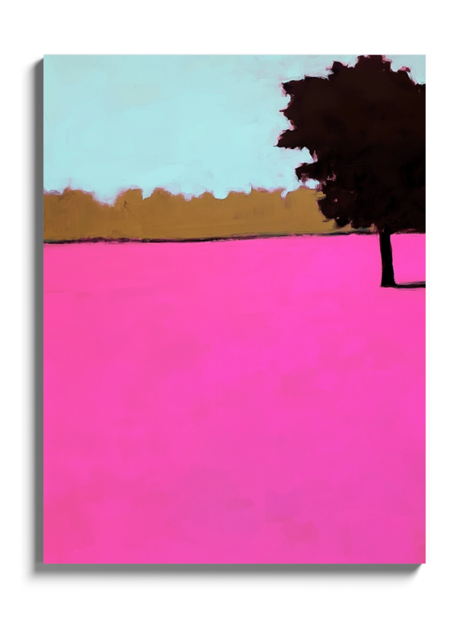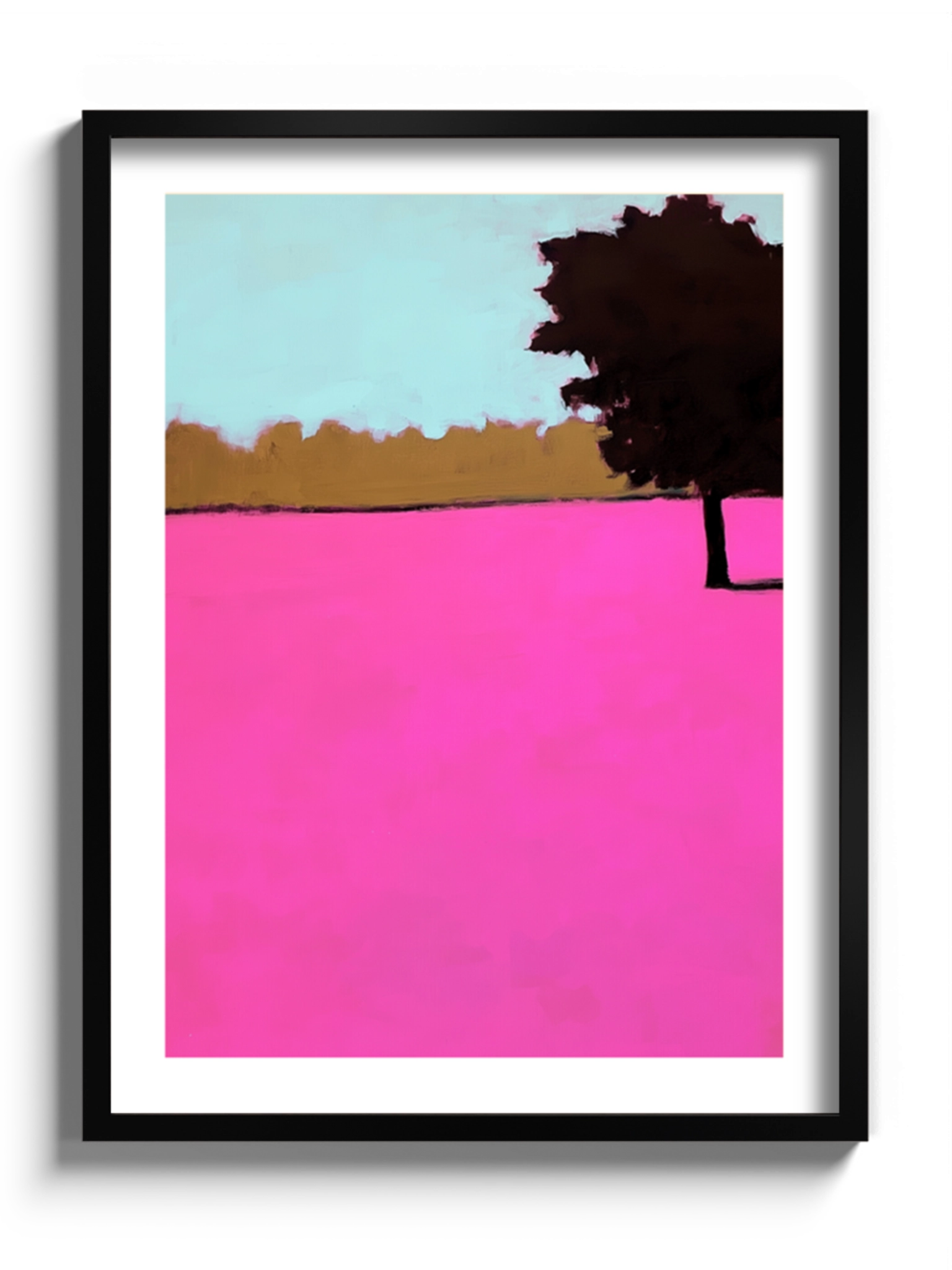 Рожевий пейзаж, чорне дерево, сучасне митсецтво.