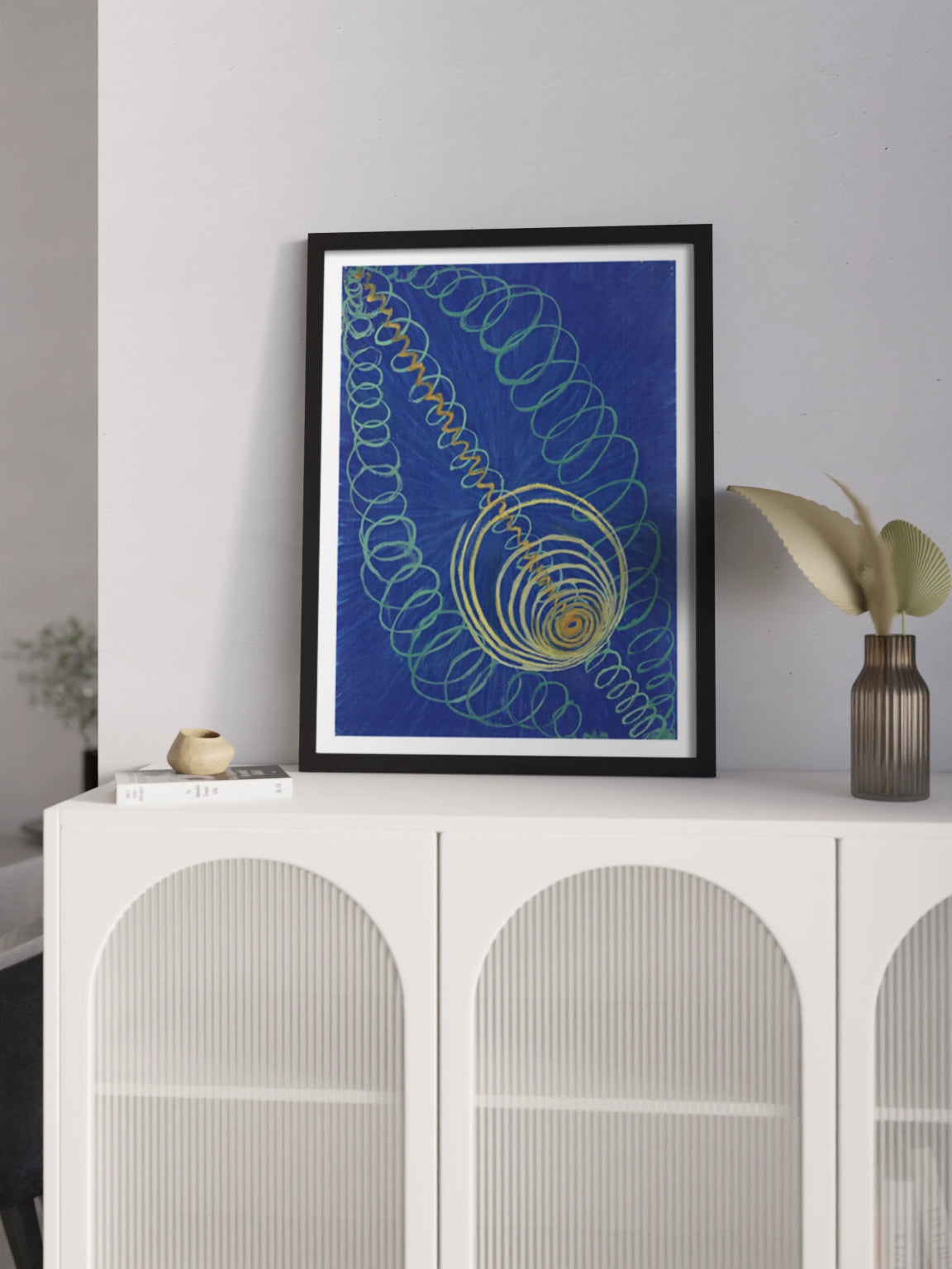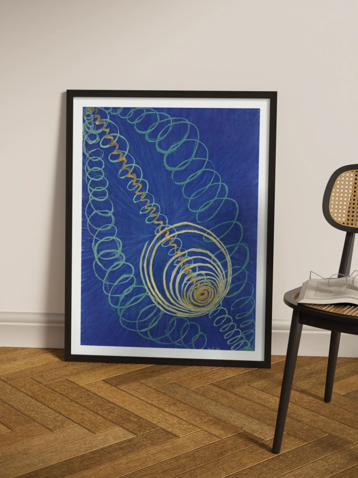 Синя абстракція шведської художниці Гільми аф Клінт (Hilma af Klint) під назвою «Первісний хаос, № 16» (Primordial Chaos, No. 16), написана у 1906–1907 роках.