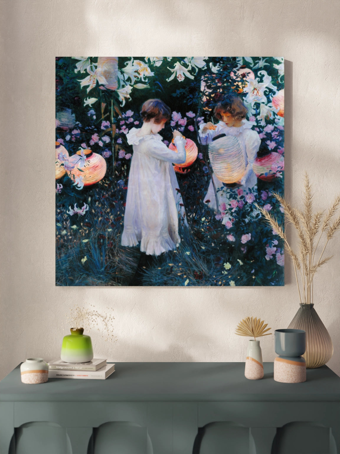 Картина американського художника John Singer Sargent. Сад, квіти, вечір, затишок.