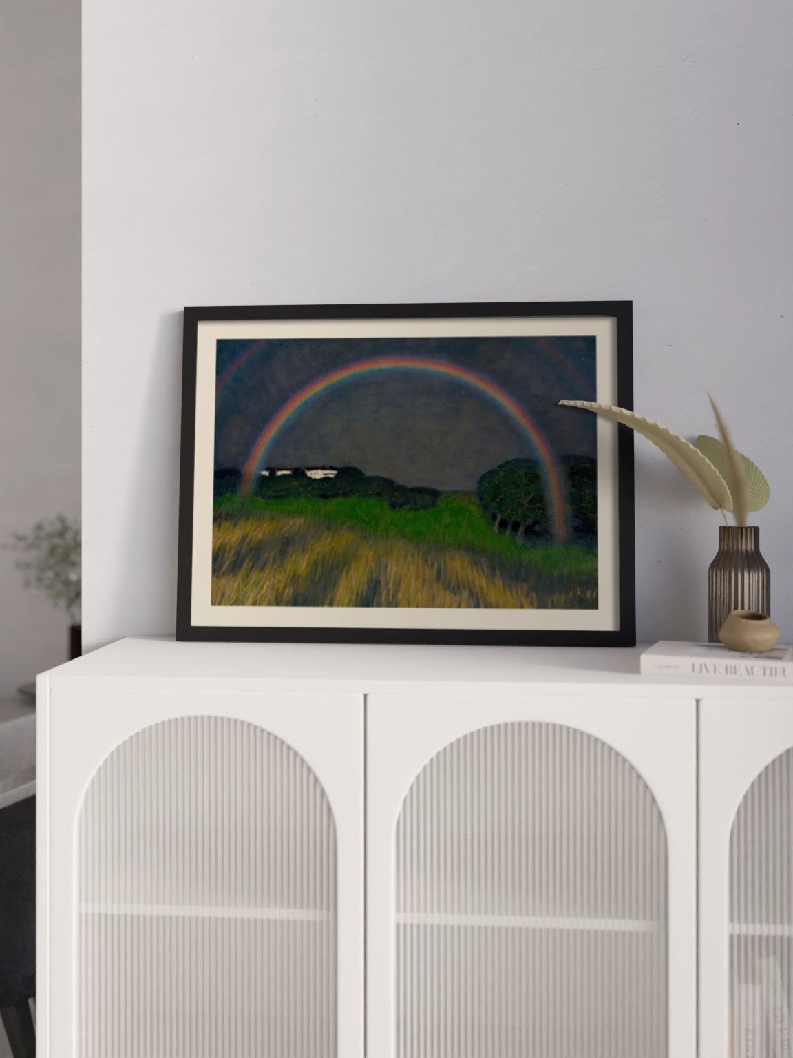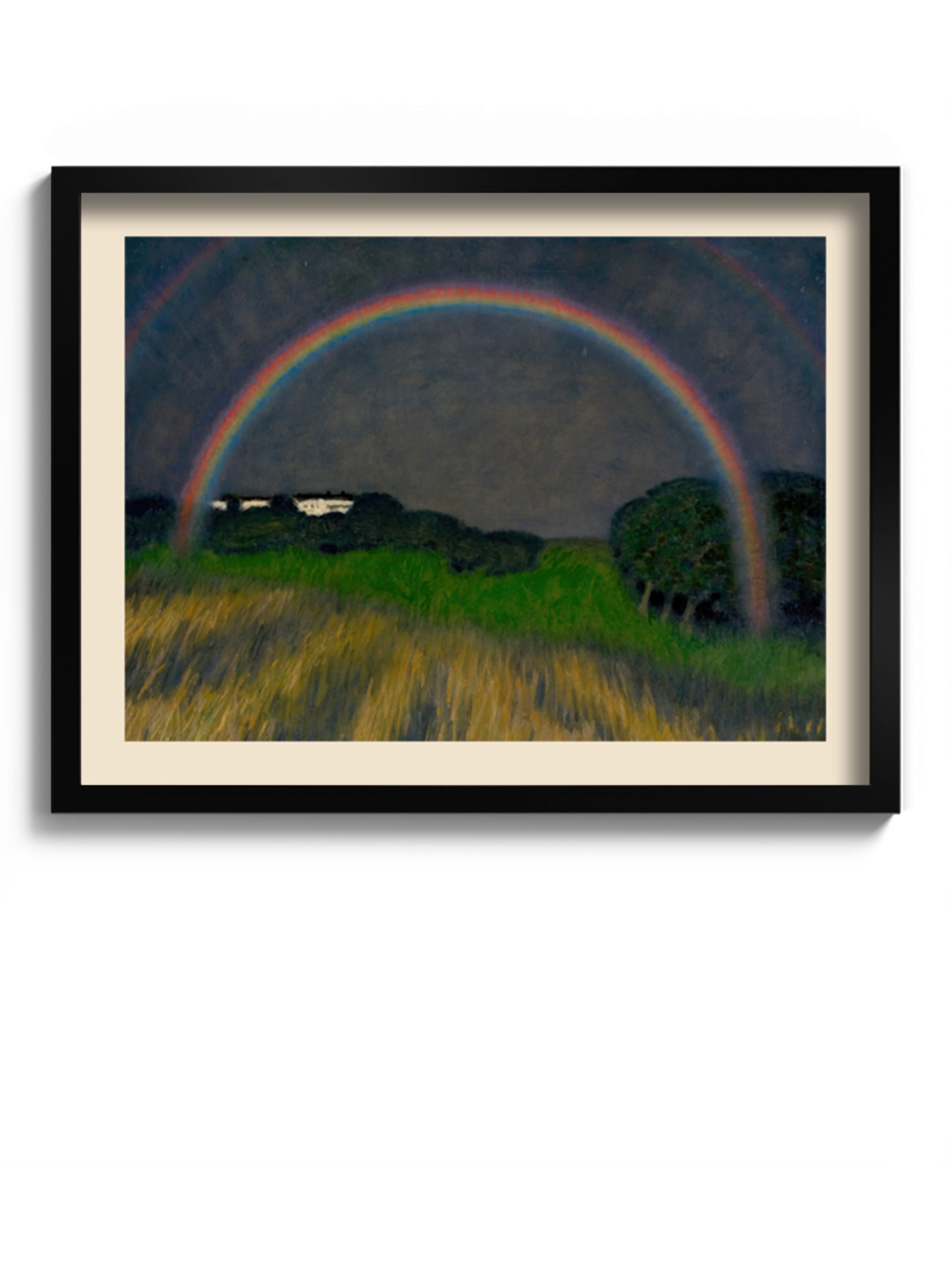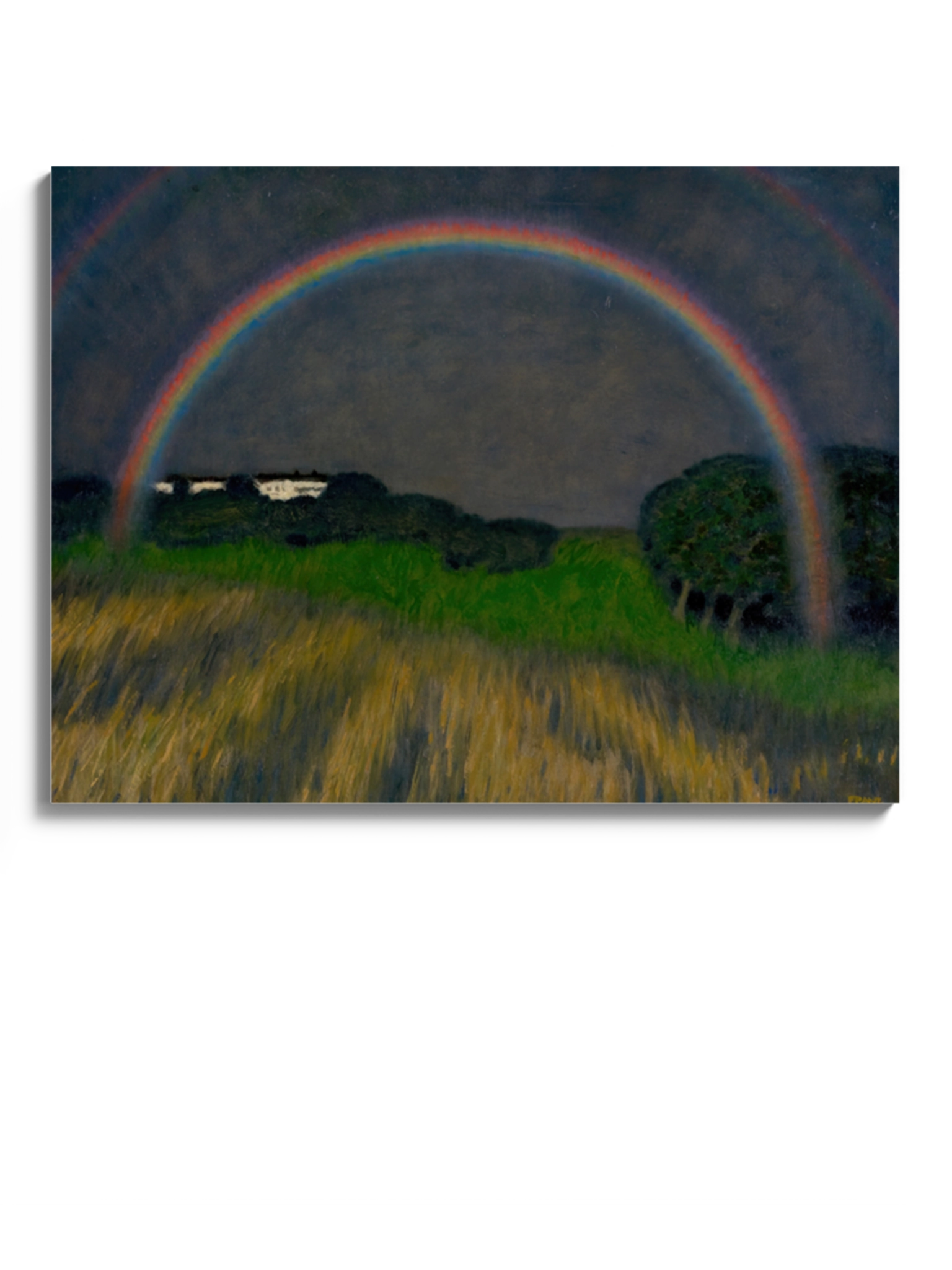 Картина з райдугою в полі на полотні, склі та декорпанелі «Пейзаж з веселкою». Картина написана німецьким живописцем Францем фон Штуком. Картина стане гармонійним акцентом у вітальні, спальні, дитячій кімнаті, офісі або в закладі.