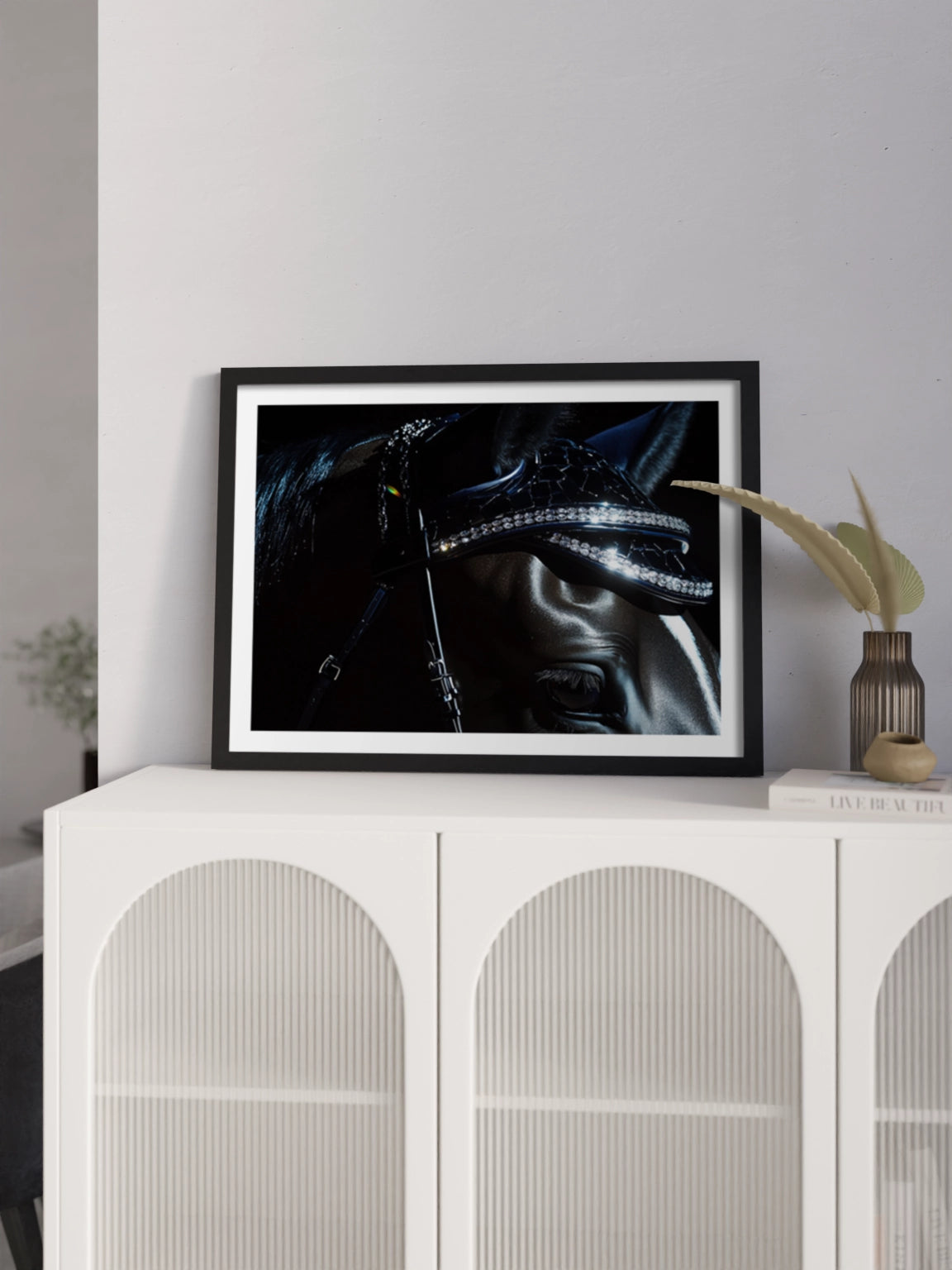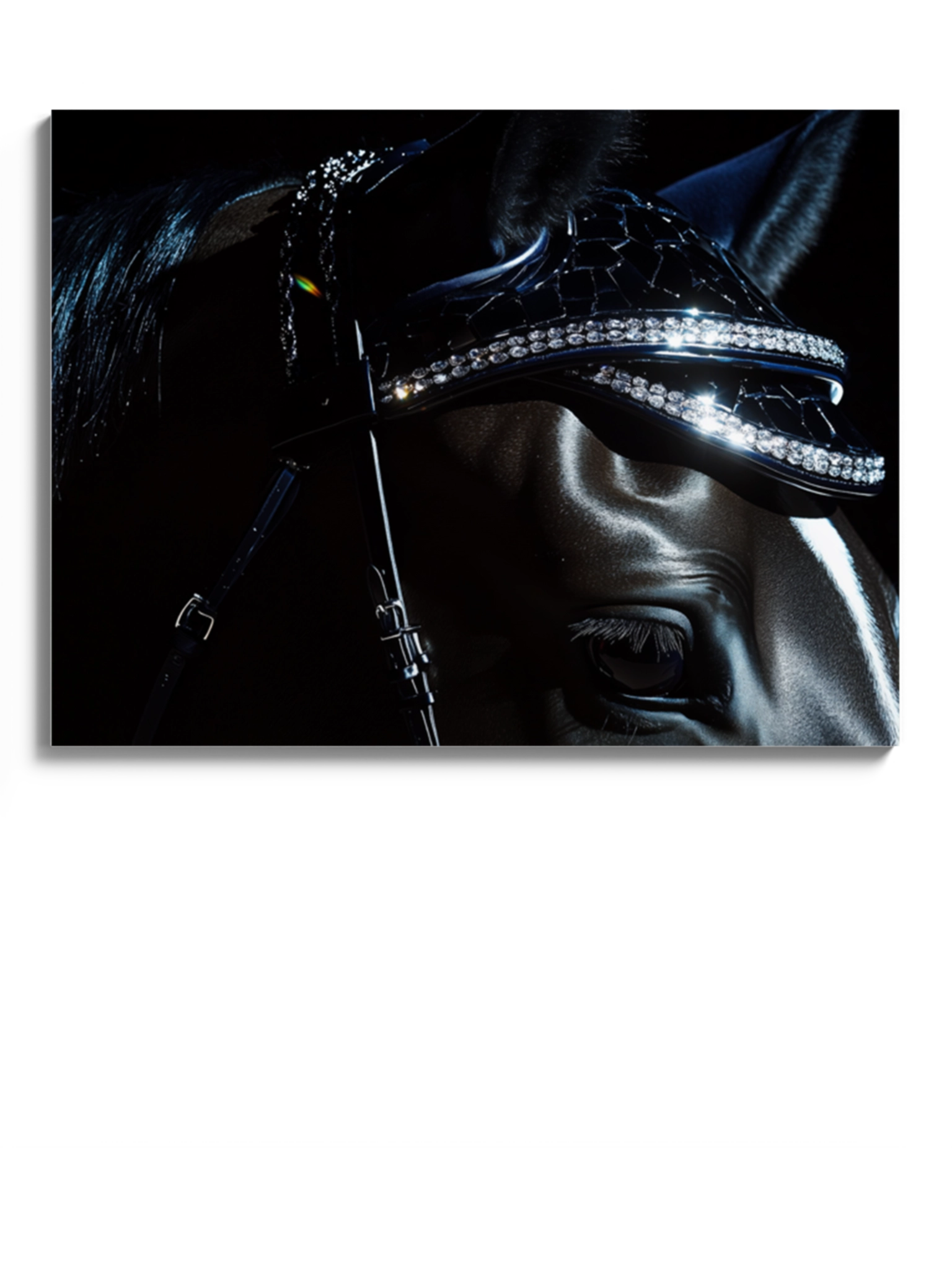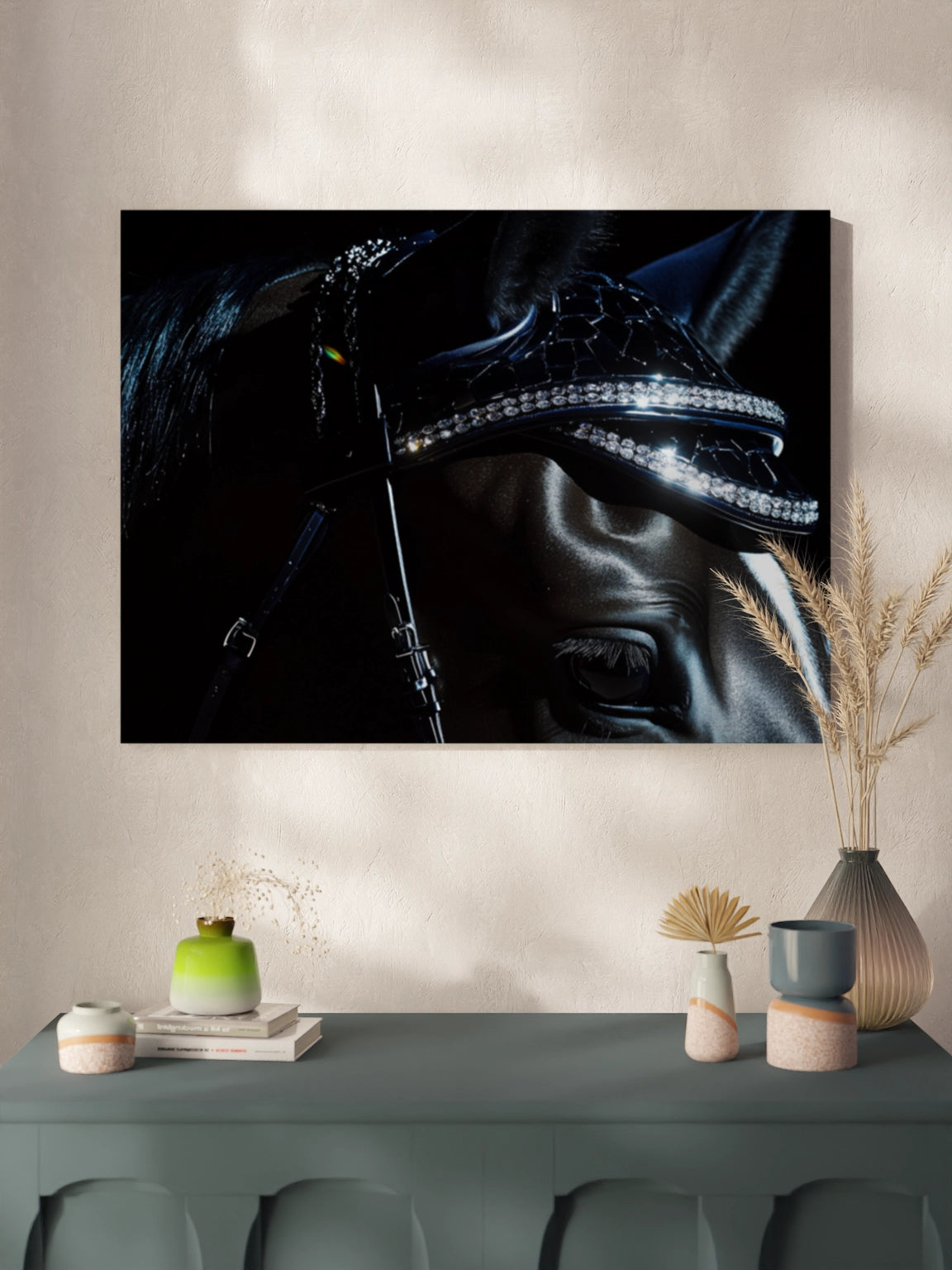 Картина на полотні, склі та декорпанелі «Кінь в стразах». Зображення стане вишуканим акцентом у вітальні, спальні, дитячій кімнаті, офісі або в закладі.