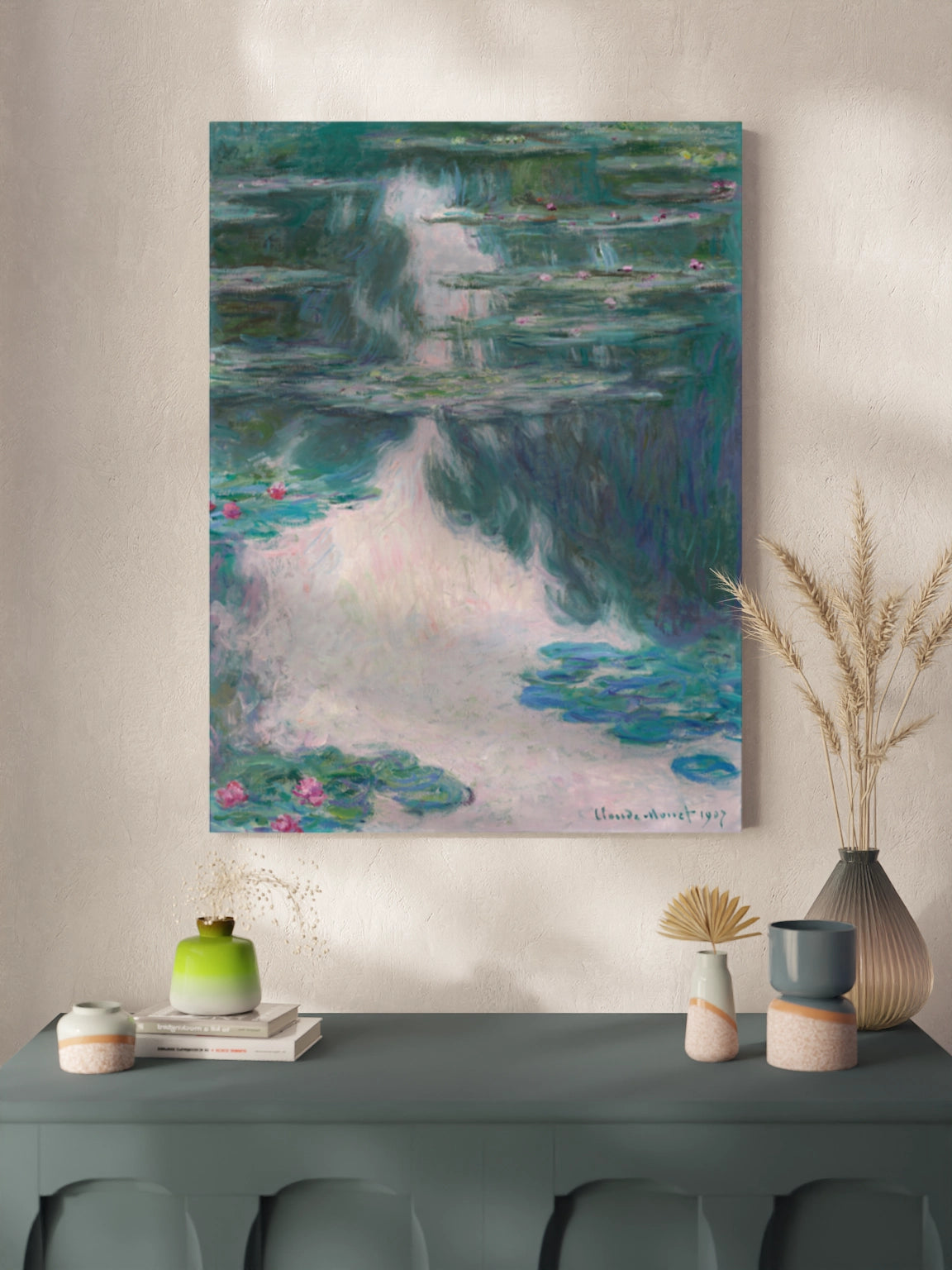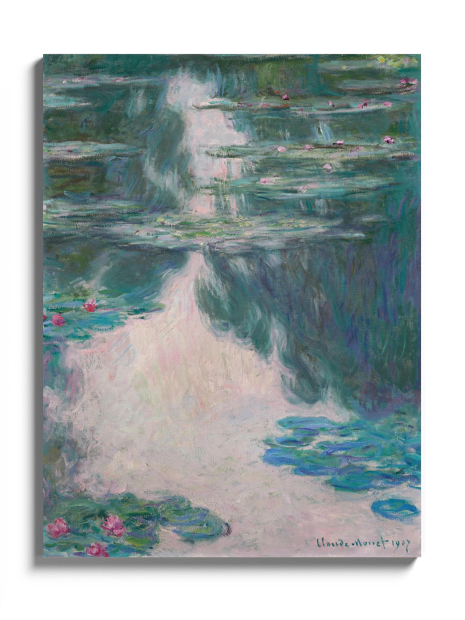 Картина на полотні, склі та декорпанелі «Водяні лілії» із відомої серії картин Клода Моне. Картина стане гармонійним акцентом у вітальні, спальні, дитячій кімнаті, офісі або в закладі.