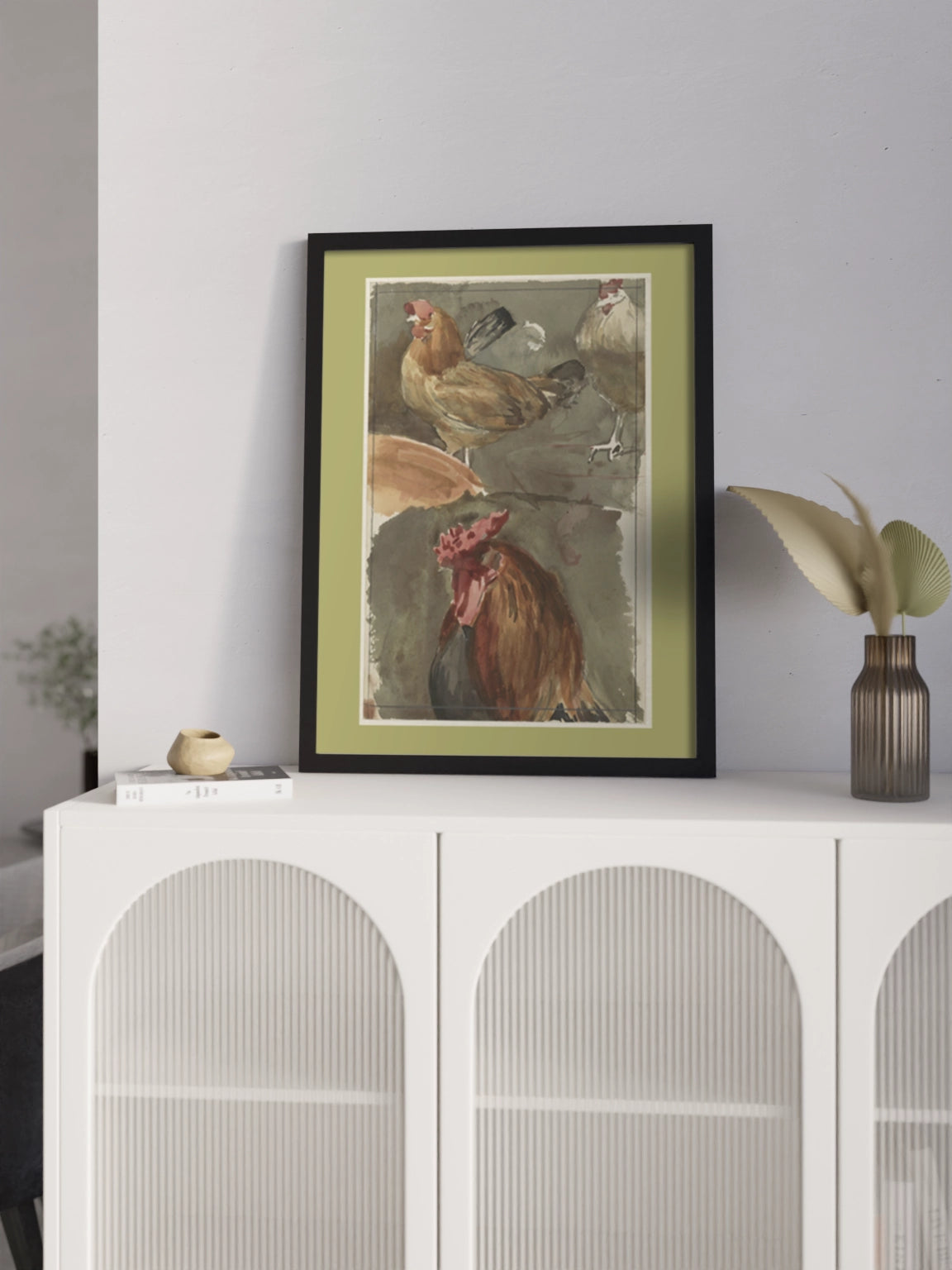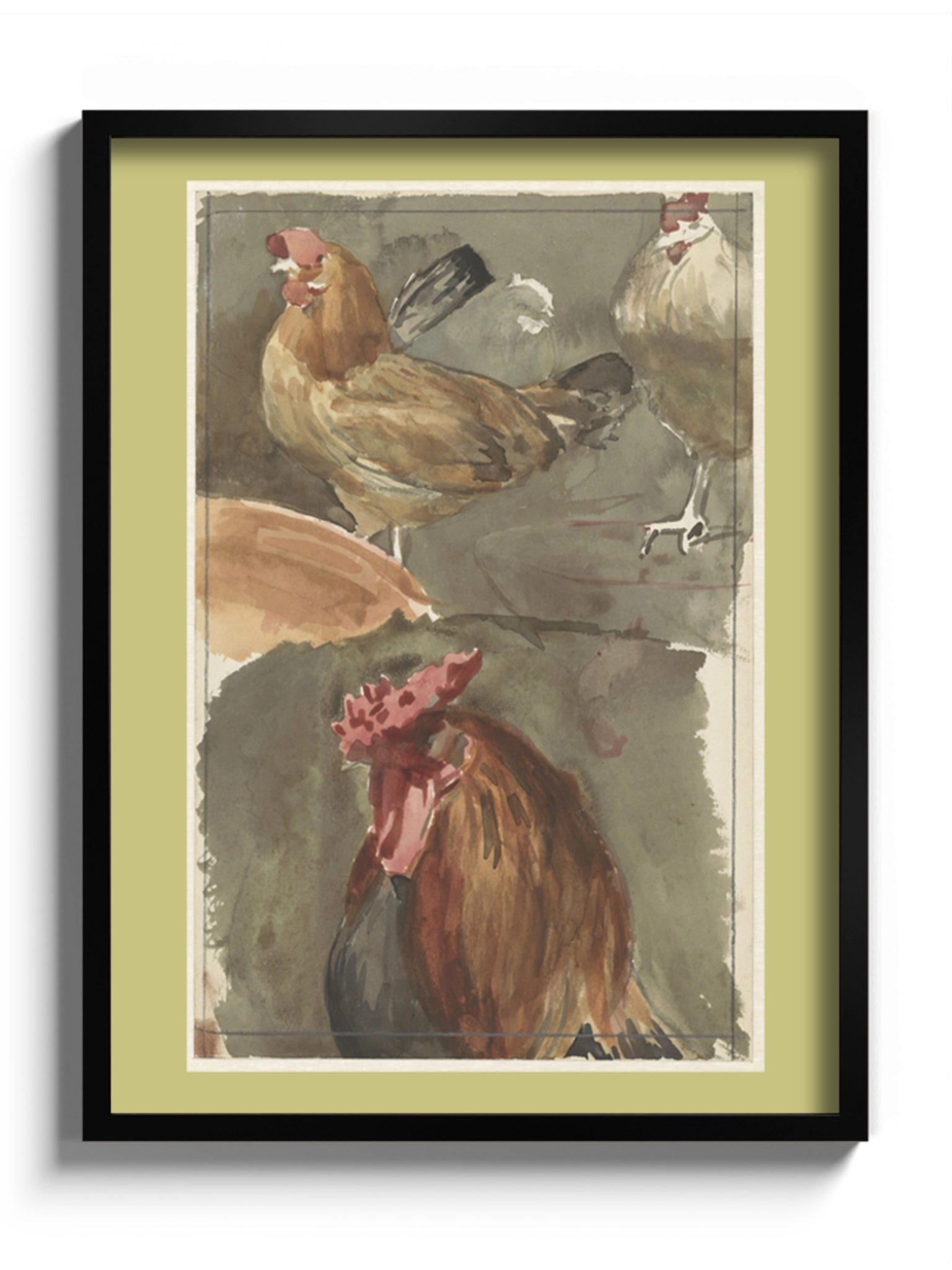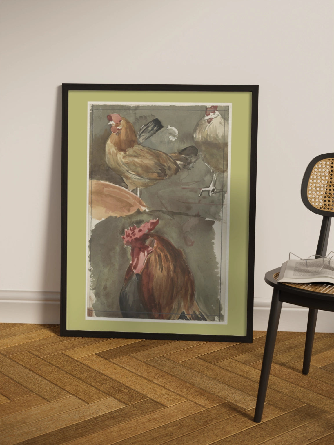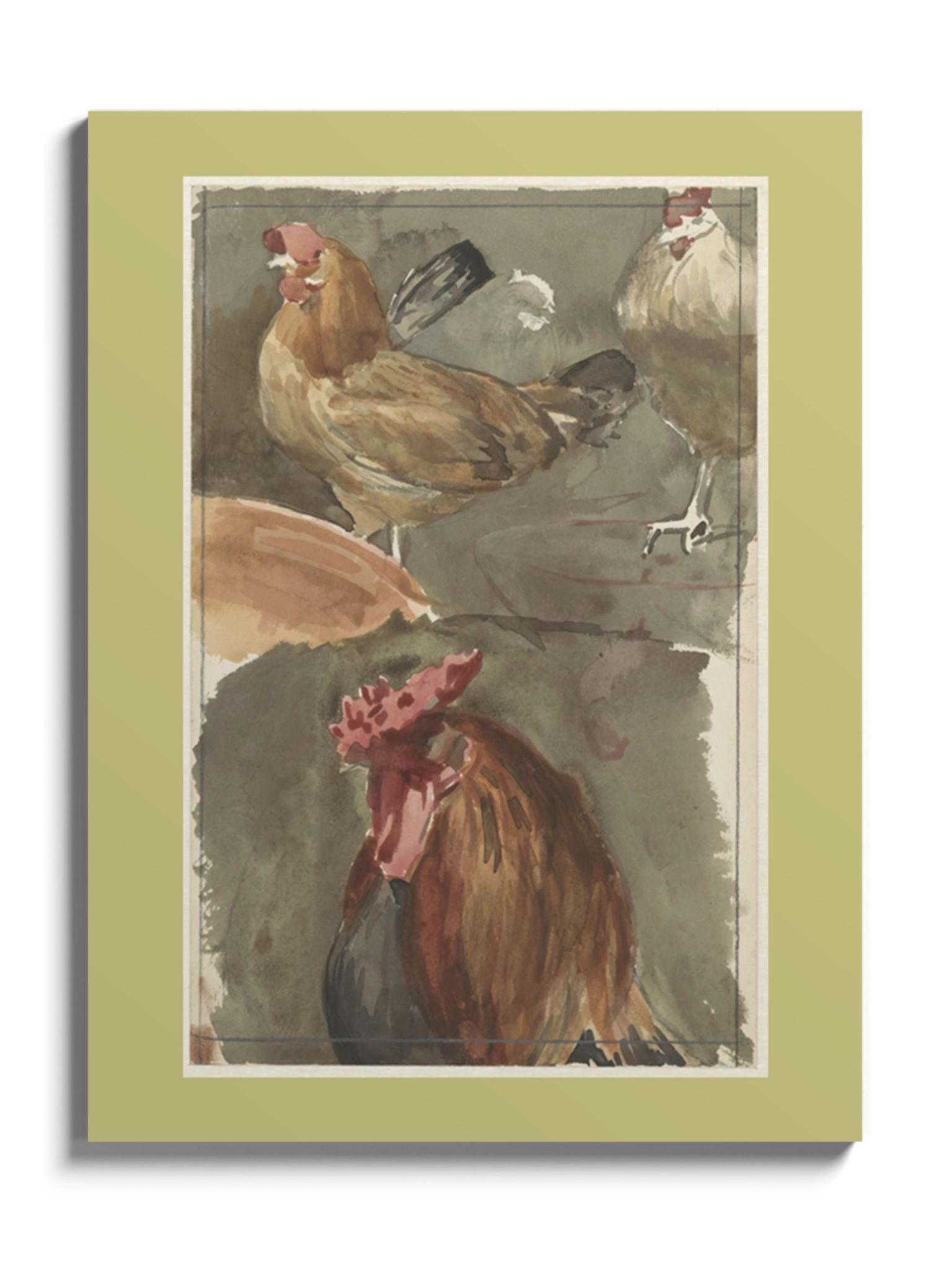 Картина з птахами на полотні, склі та декорпанелі «Півень з курками» - друкована картина для інтер’єру. Робота голландського художника Ян Вет (Jan Veth), акварельний замальовок стане гармонійним акцентом у вітальні, спальні, дитячій кімнаті, офісі або громадському просторі.