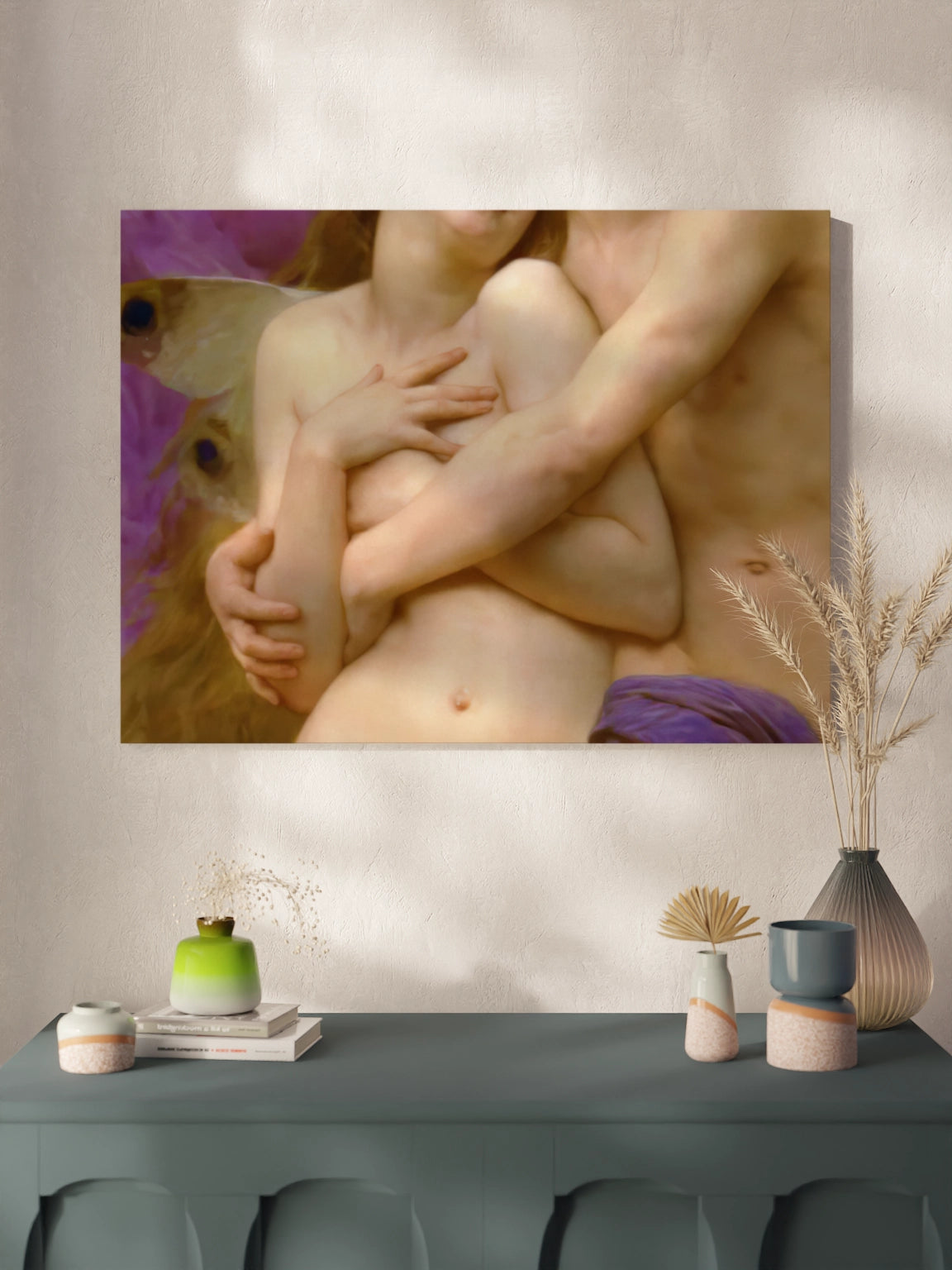 Фрагмент картини французького художника Вільяма Бугро. Пара закоханих, фіолетовий колір, класичний живопис.