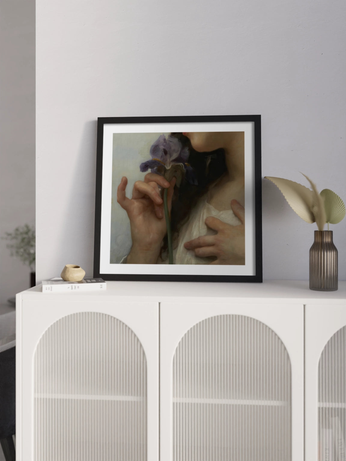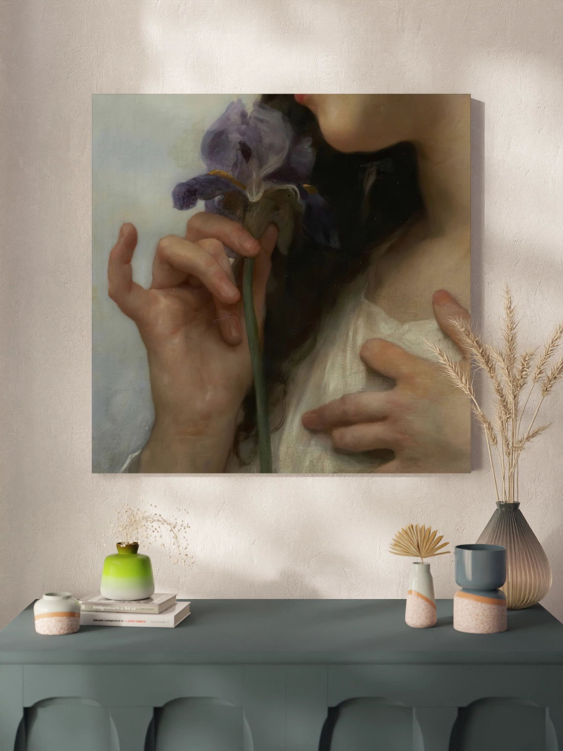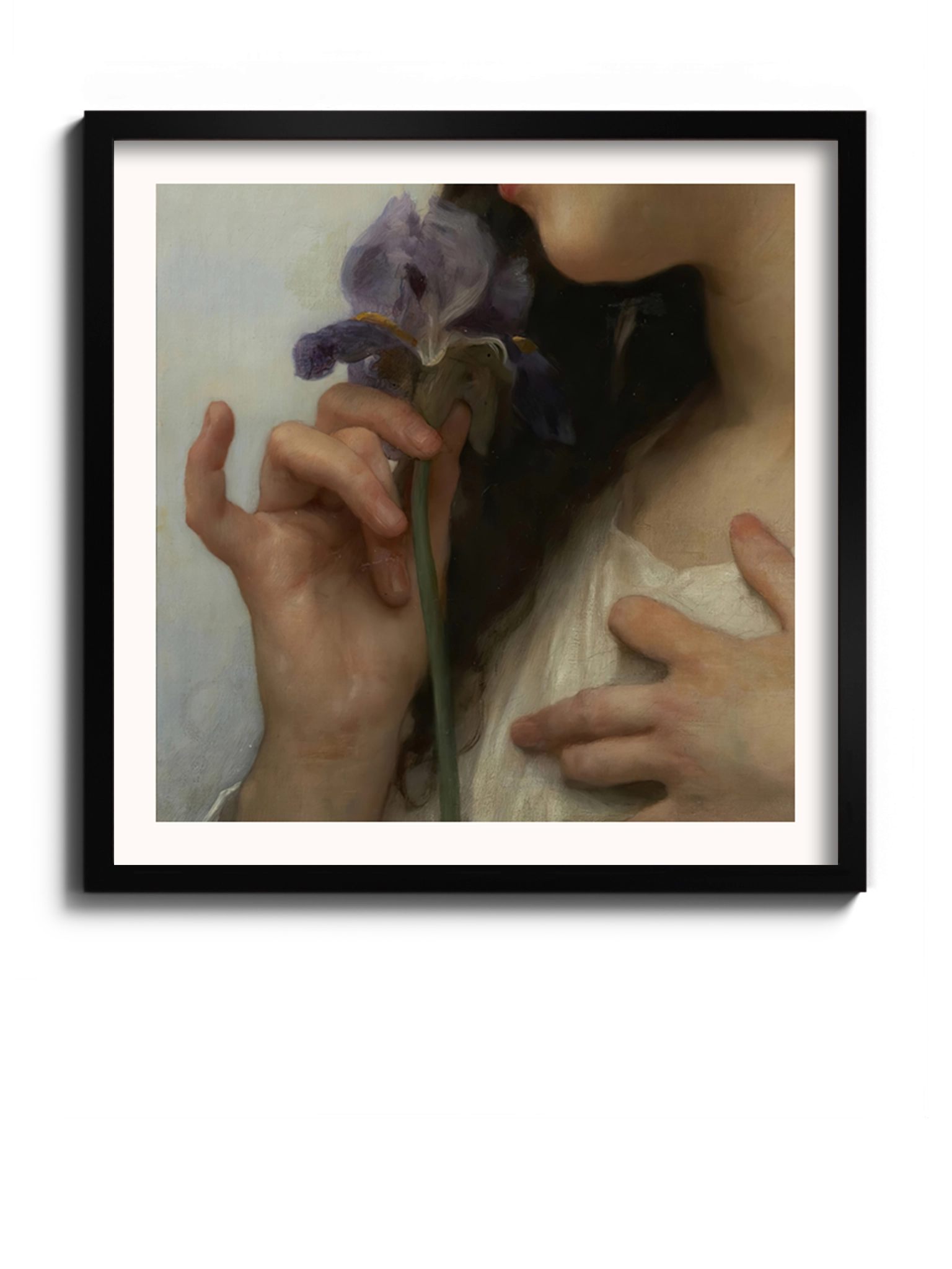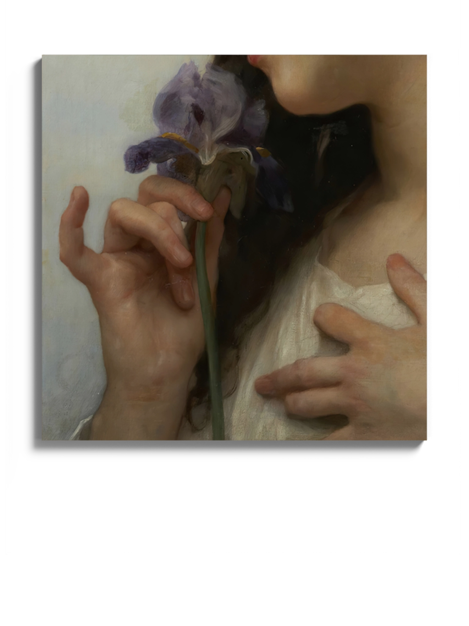 Фрагмент картини французького художника Вільяма Бугро. Руки, квітка, романтика, бежевий колір.